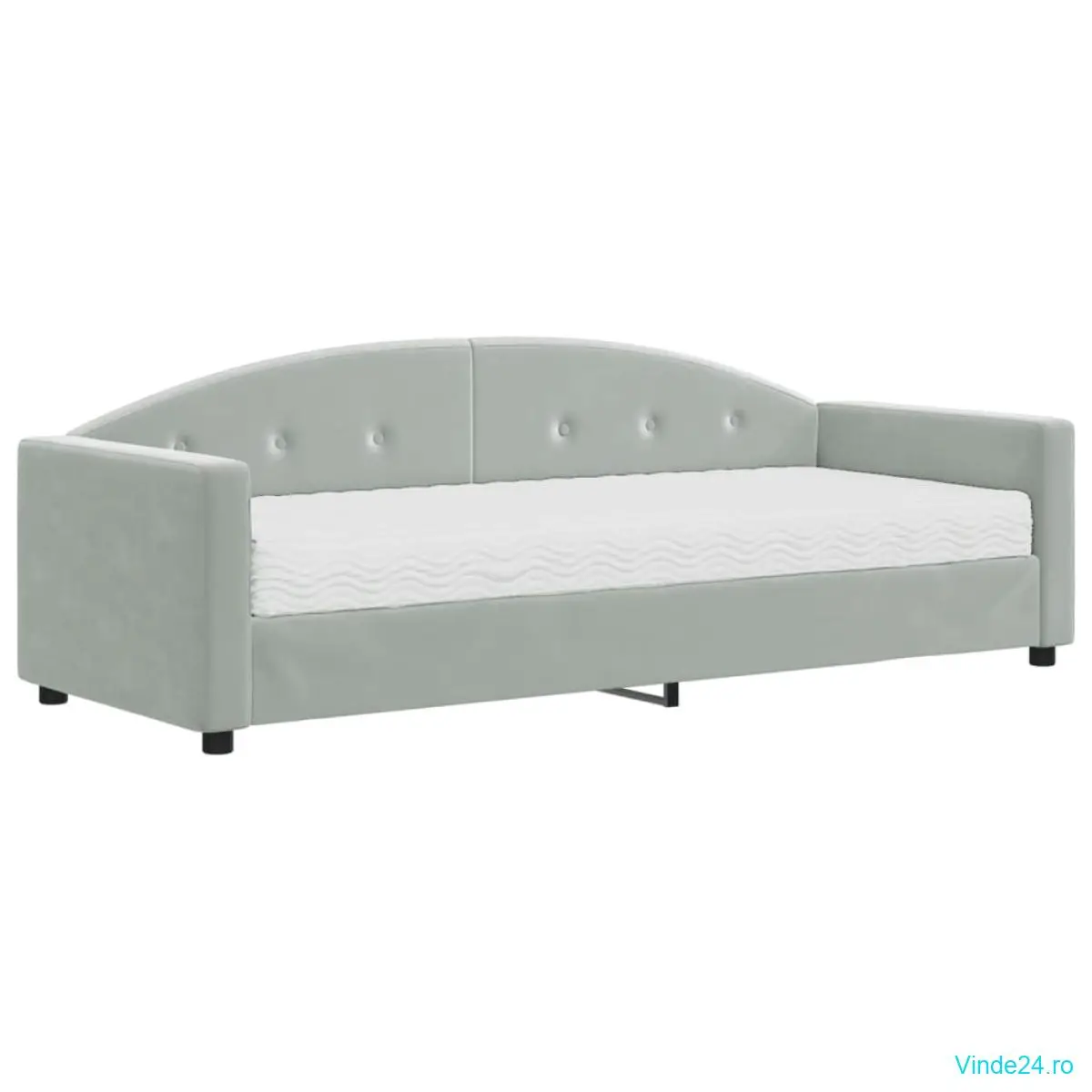 vidaXL Pat de zi cu saltea, gri deschis, 80x200 cm, catifea