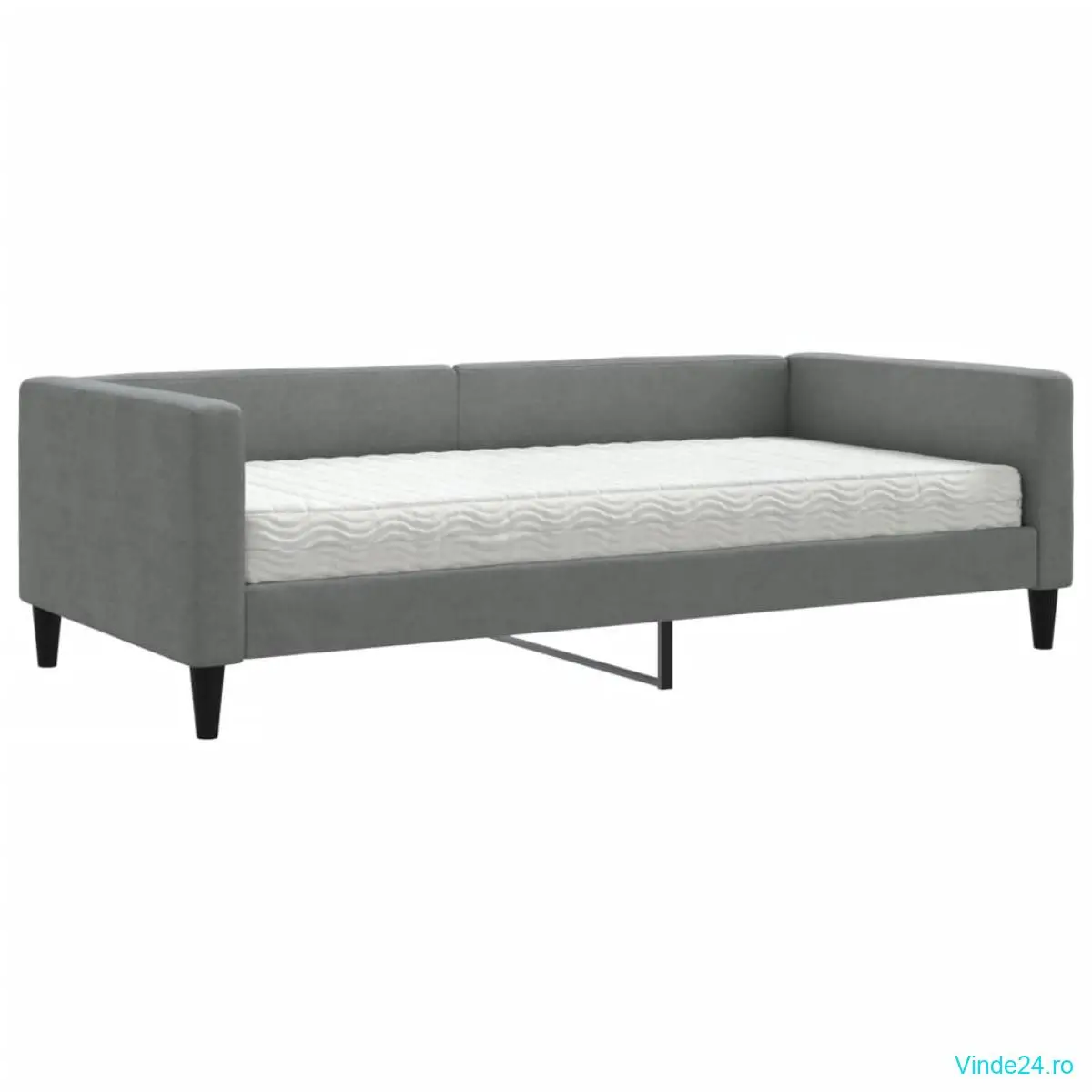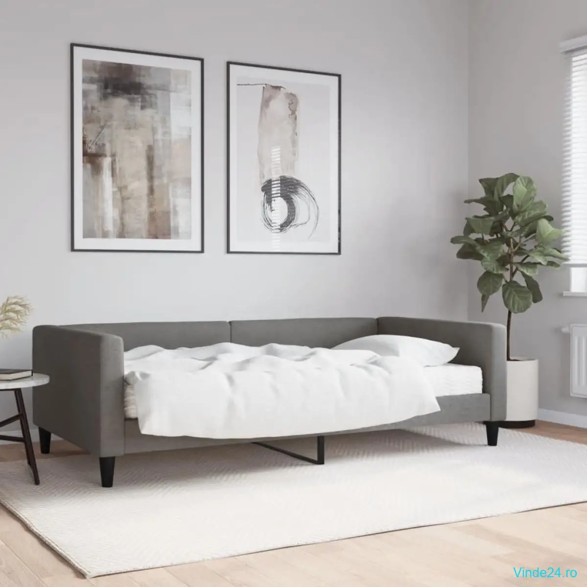 vidaXL Pat de zi cu saltea, gri închis, 100x200 cm, textil