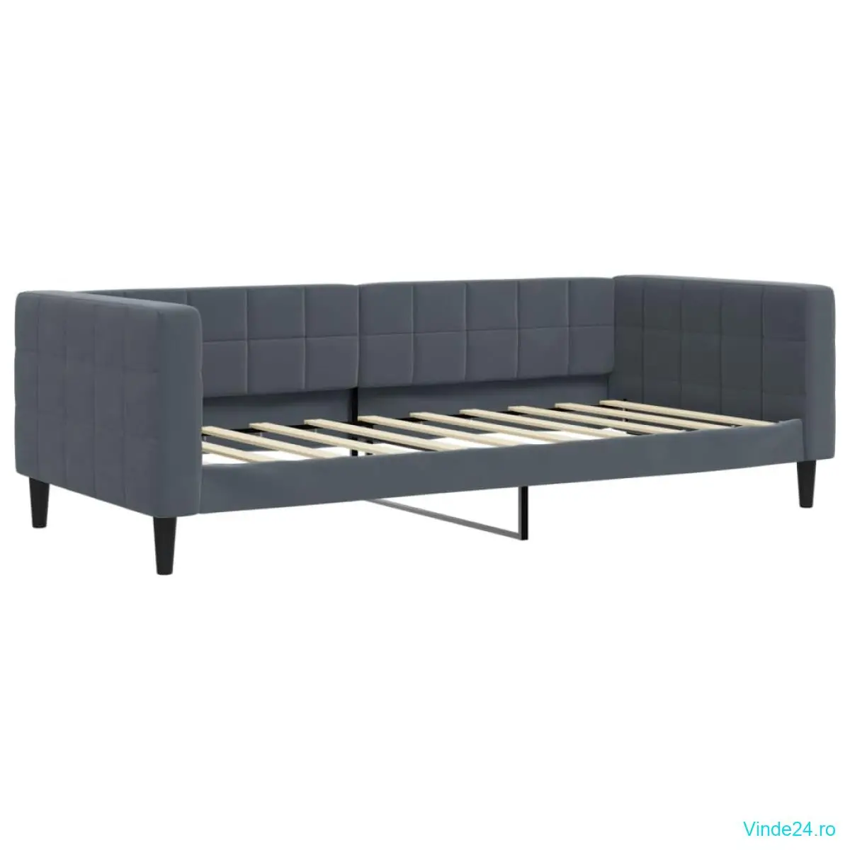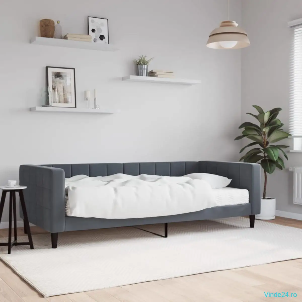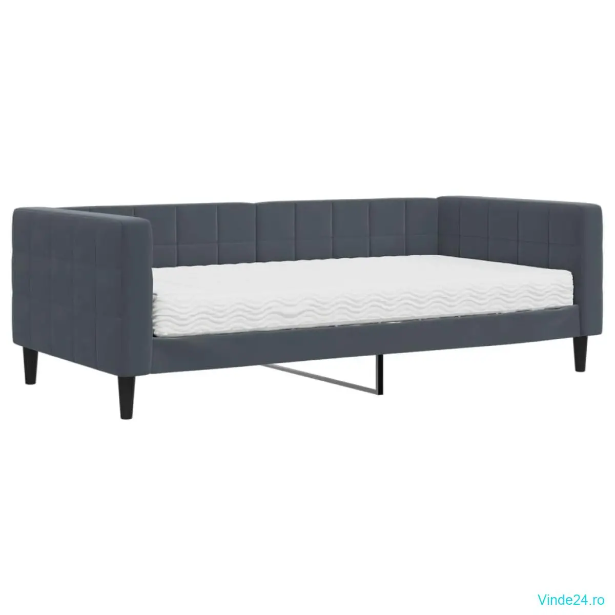 vidaXL Pat de zi cu saltea, gri închis, 90x190 cm, catifea