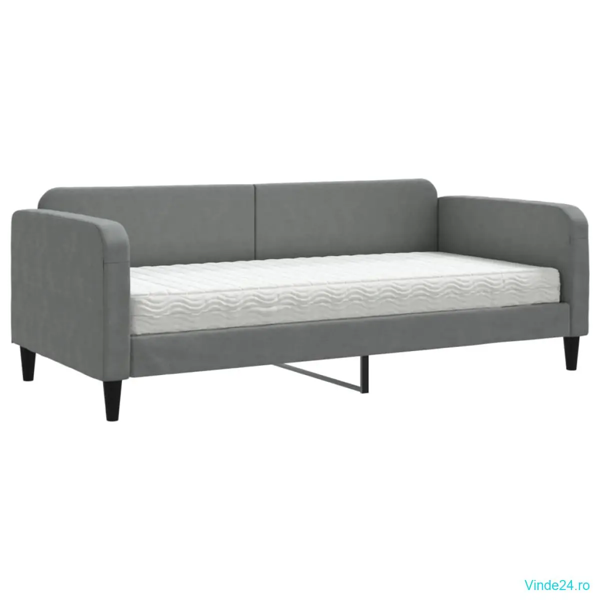 vidaXL Pat de zi cu saltea, gri închis, 90x200 cm, textil