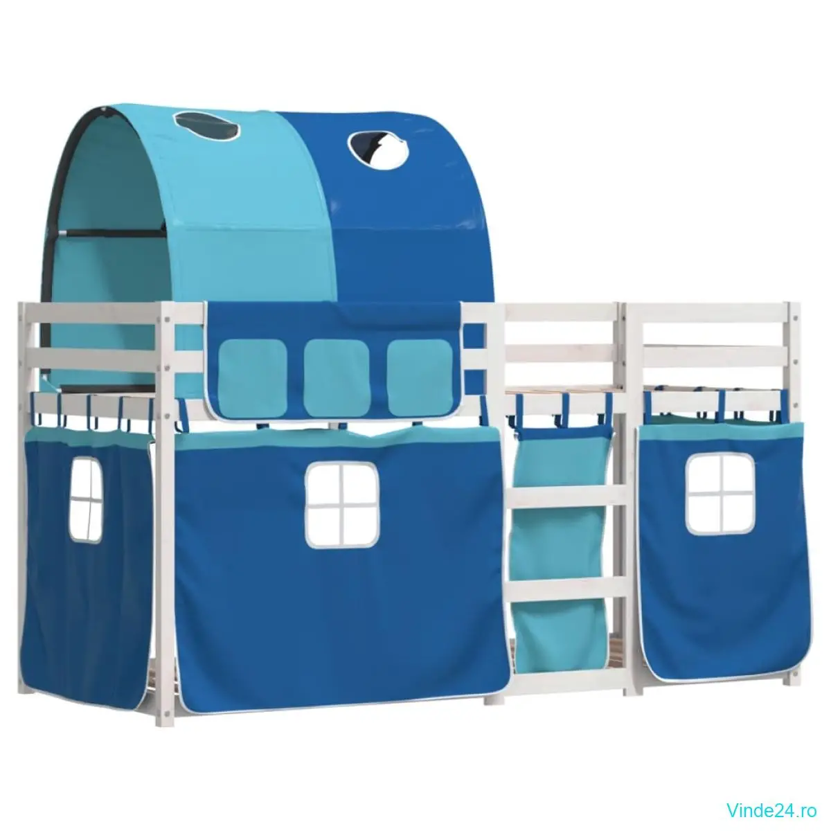 vidaXL Pat supraetajat cu perdele, albastru, 90x190 cm, lemn masiv pin