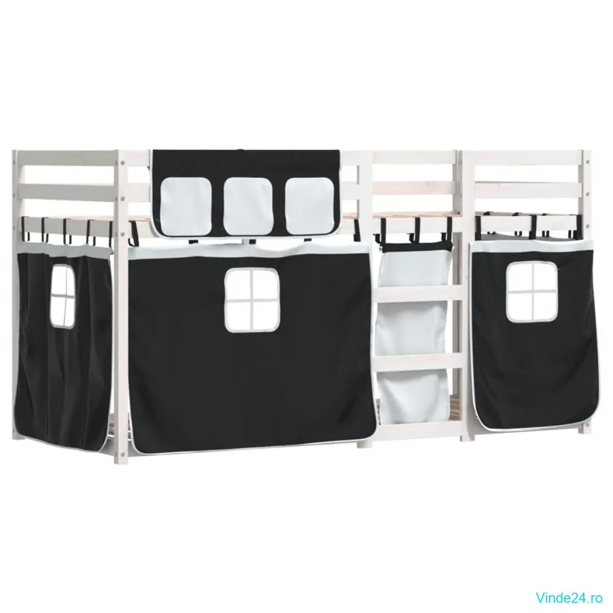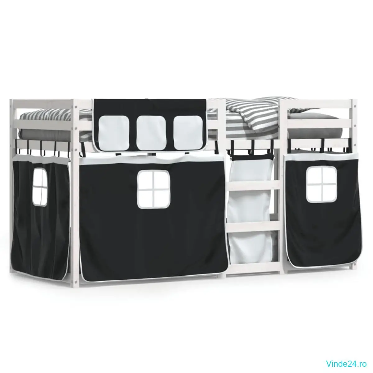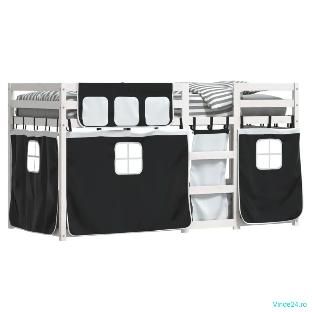 - Lemn masiv de pin: Acest pat supraetajat este realizat din lemn masiv de pin pentru stabilitate și durabilitate. Lemnul de pin are fibre drepte, iar nodurile dau materialului unicitate și un aspect rustic.
