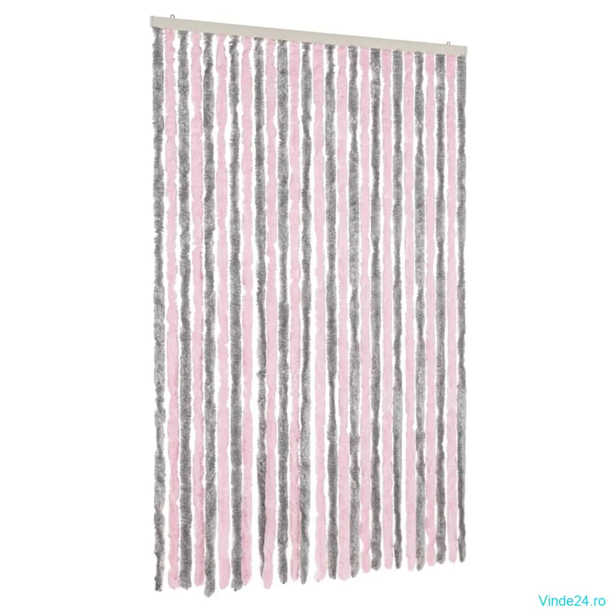 vidaXL Perdea pentru insecte gri argintiu și roz, 118x220 cm, chenille