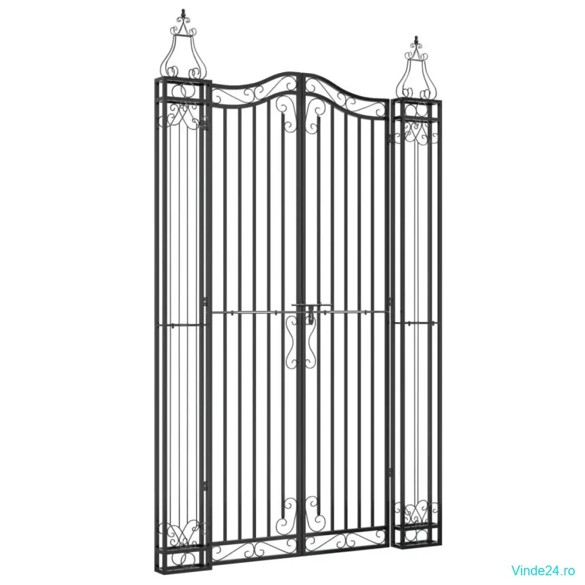 vidaXL Poartă de grădină, negru, 121x8x200 cm, fier forjat