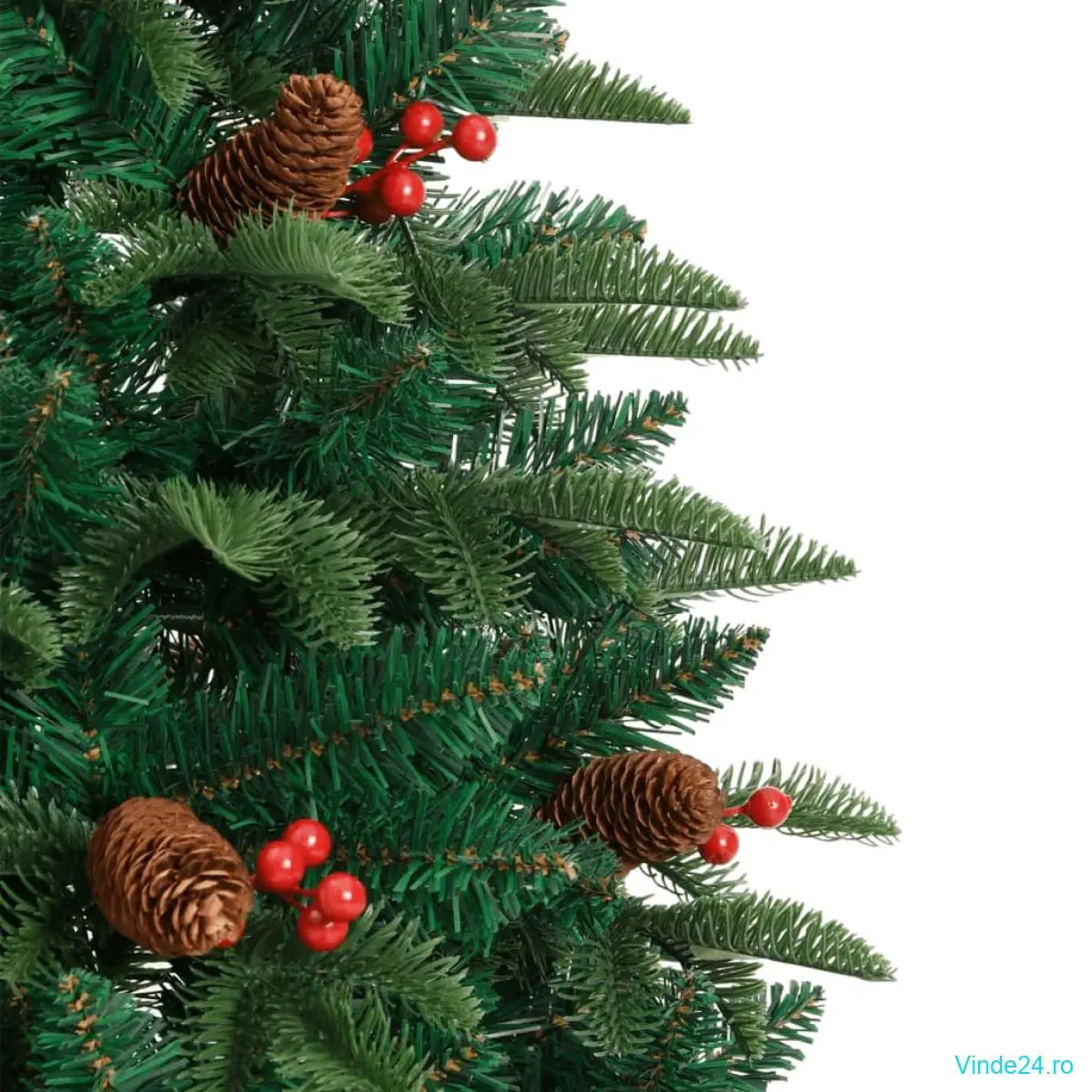 - Decor frumos: Pomul de Crăciun are conuri și fructe de pădure roșii, creând un aspect natural minunat.