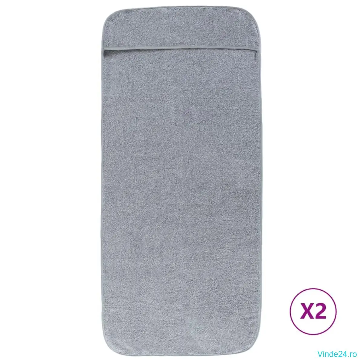 vidaXL Prosoape de plajă, 2 buc., gri, 60x135 cm, textil 400 GSM