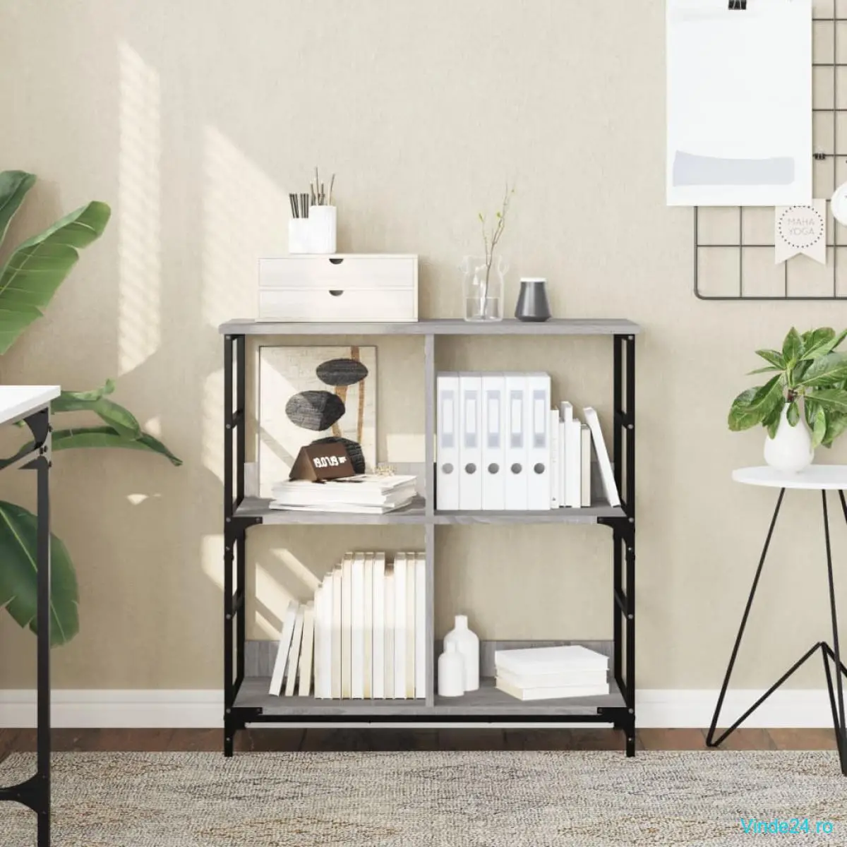 vidaXL Raft de cărți, gri sonoma, 78,5x33x82 cm, lemn prelucrat