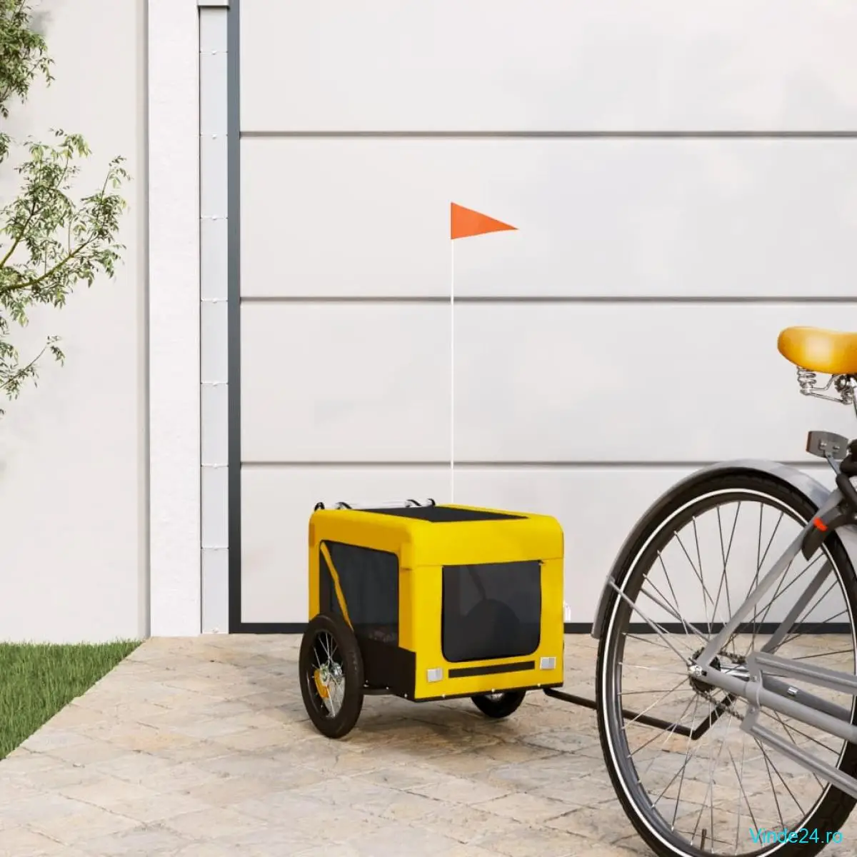 • Plimbare în siguranță: Remorca de marfă pentru biciclete are două roți mari, care permit o călătorie lină și sigură pe terenuri diverse, iar reflectoarele din exterior oferă vizibilitate în întuneric, la care se adaugă steagul, care ajută la creșterea siguranței în trafic.