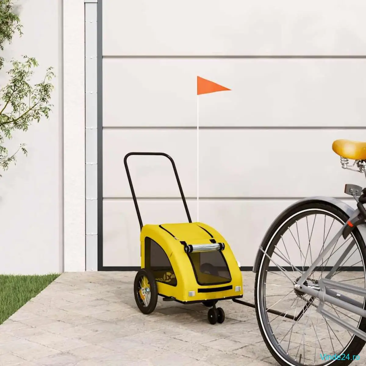 vidaXL Remorcă de bicicletă animale companie galben textil oxford/fier