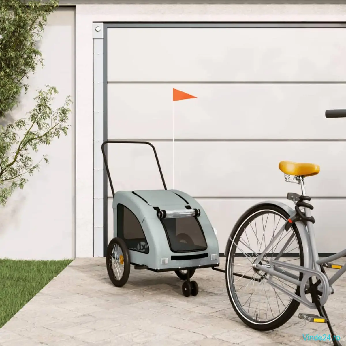 vidaXL Remorcă de bicicletă animale companie, gri, textil oxford/fier