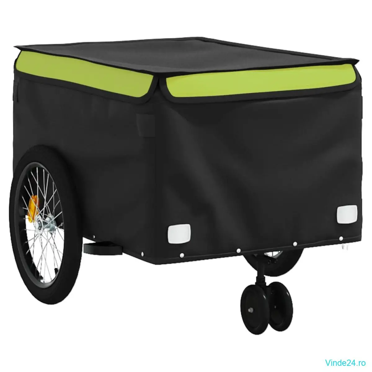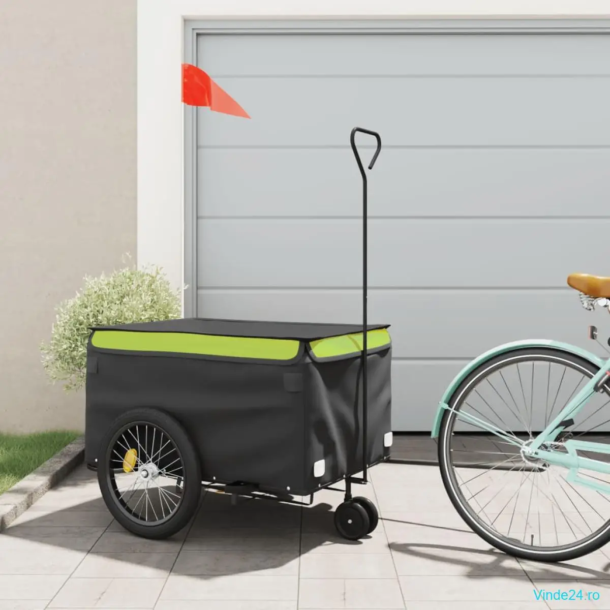 vidaXL Remorcă pentru biciclete, negru și verde, 45 kg, fier