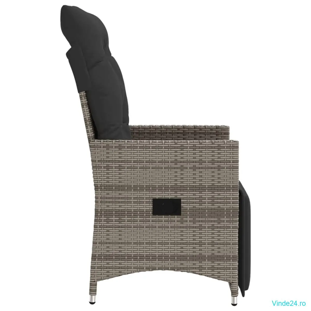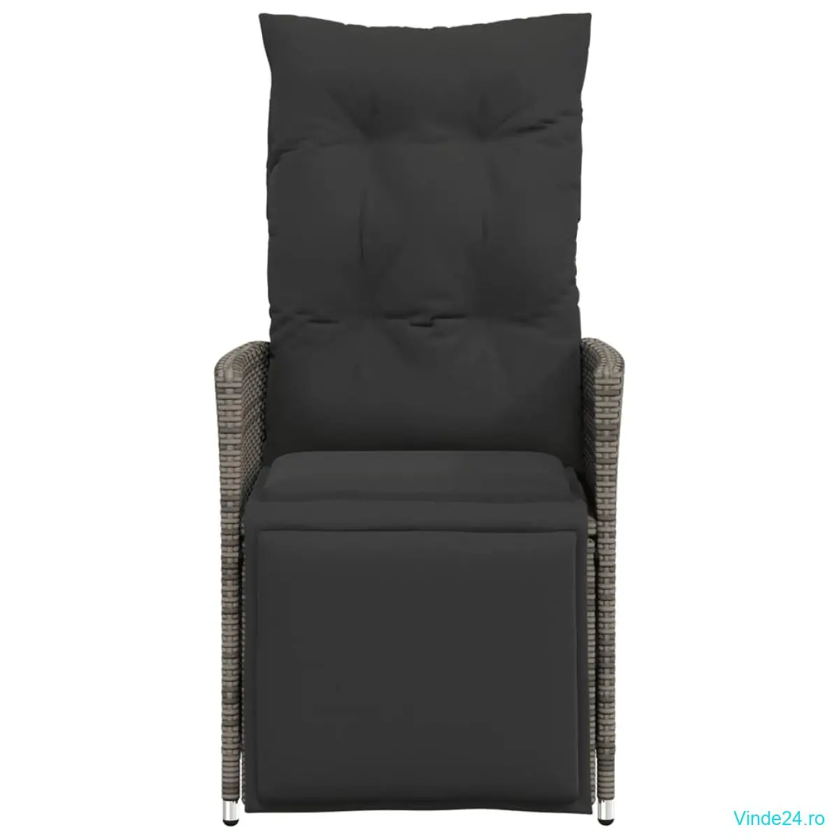 vidaXL Scaun de grădină rabatabil cu perne, gri, poliratan