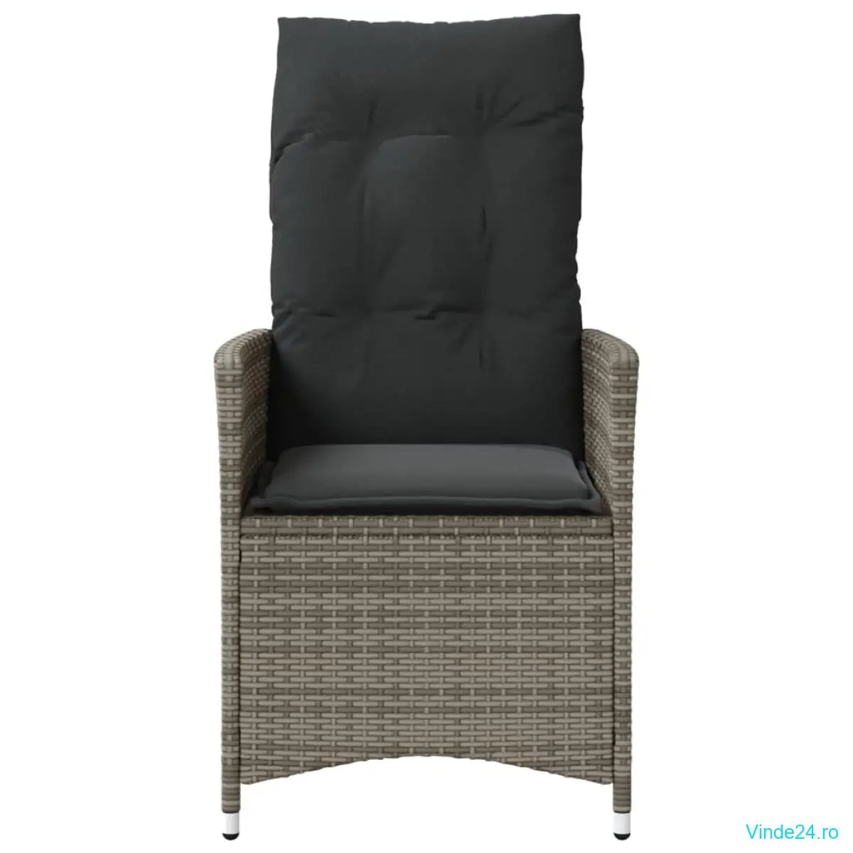 vidaXL Scaun de grădină rabatabil cu perne, gri, poliratan