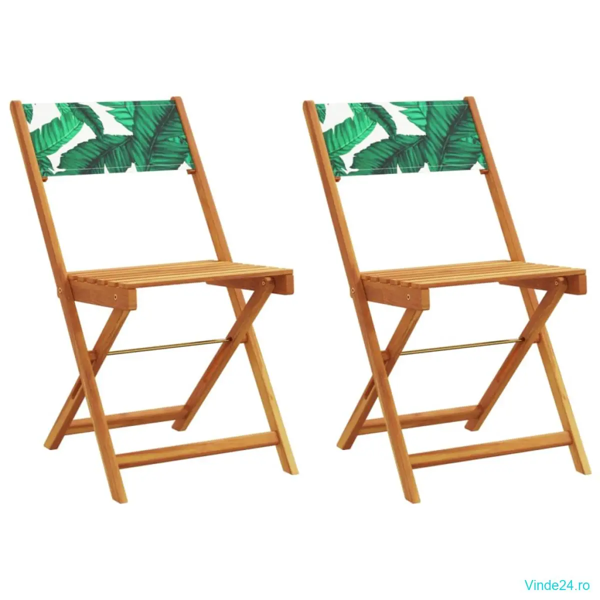 vidaXL Scaune bistro 2 buc., model frunze, lemn masiv acacia textil