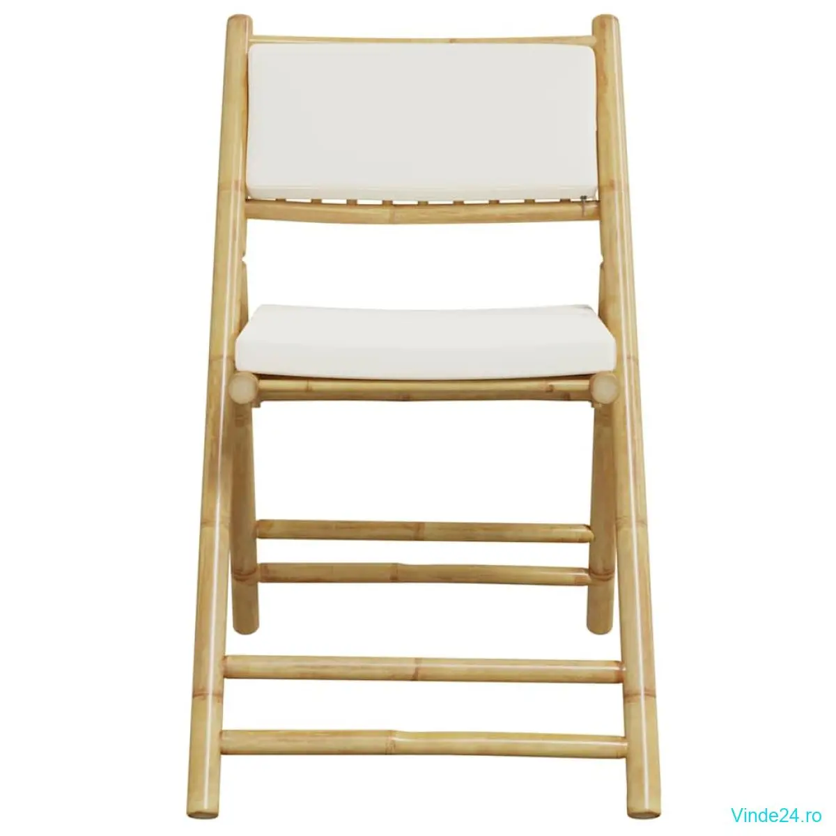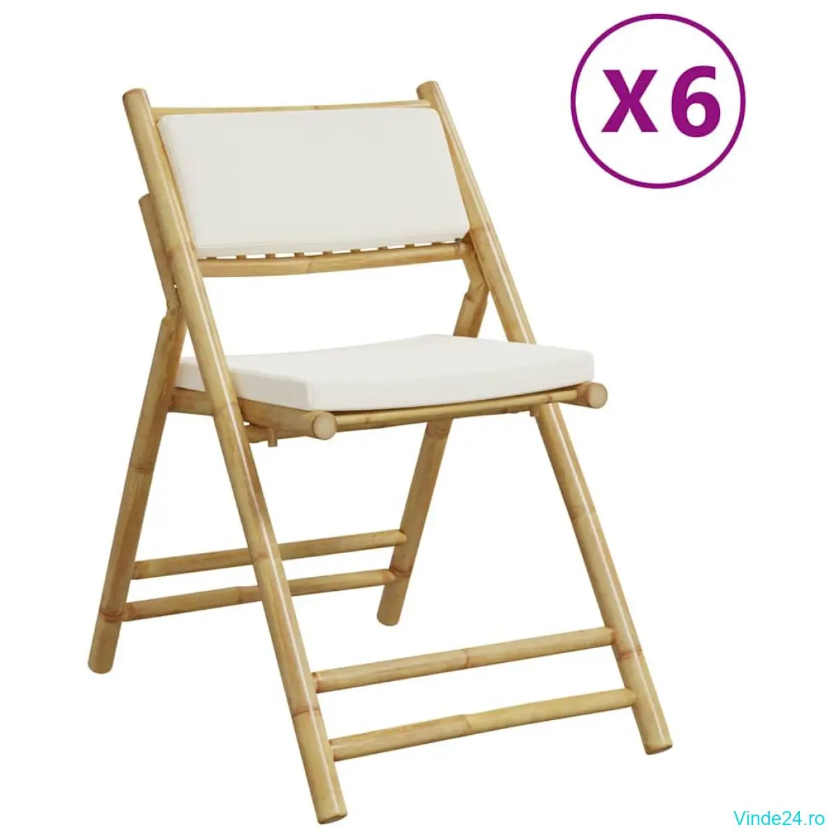 vidaXL Scaune bistro pliabile, 6 buc., cu perne alb crem, bambus