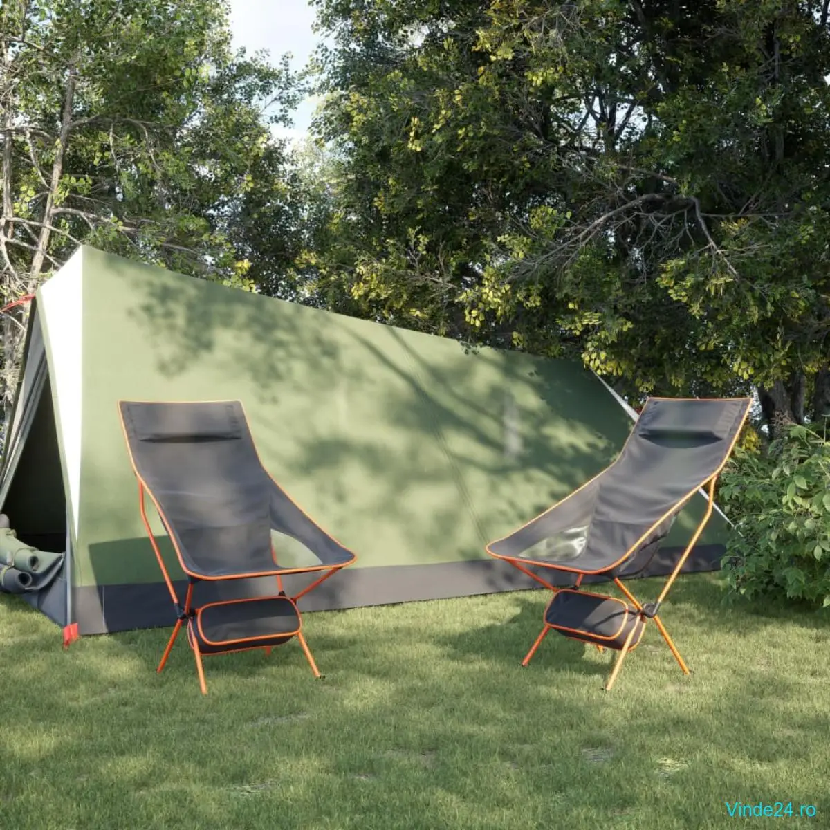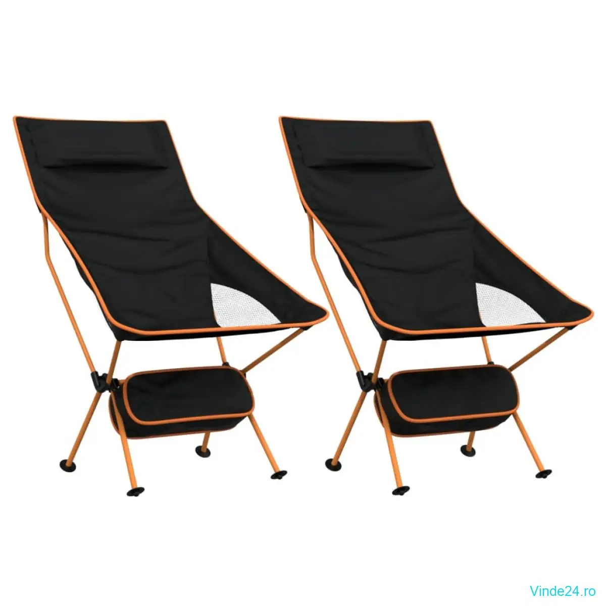 vidaXL Scaune camping pliabile, 2 buc., negru, textil oxford /aluminiu