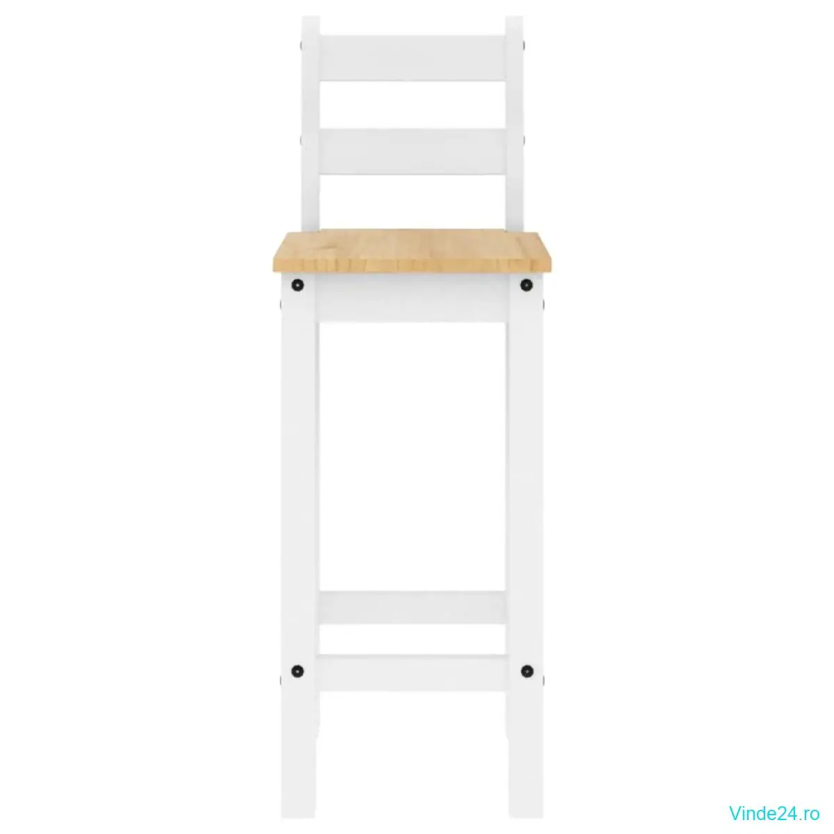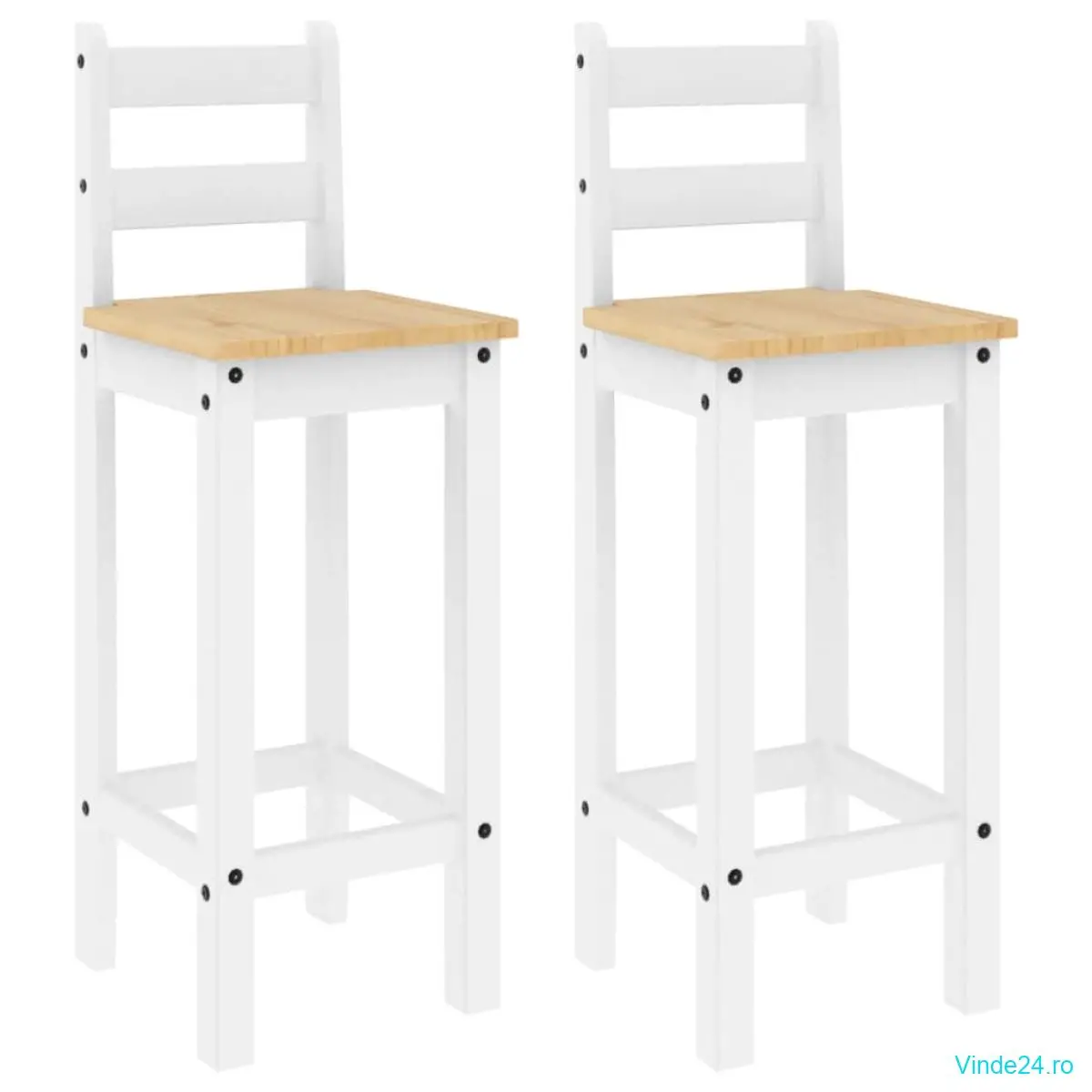 vidaXL Scaune de bar, 2 buc., alb, lemn masiv de pin