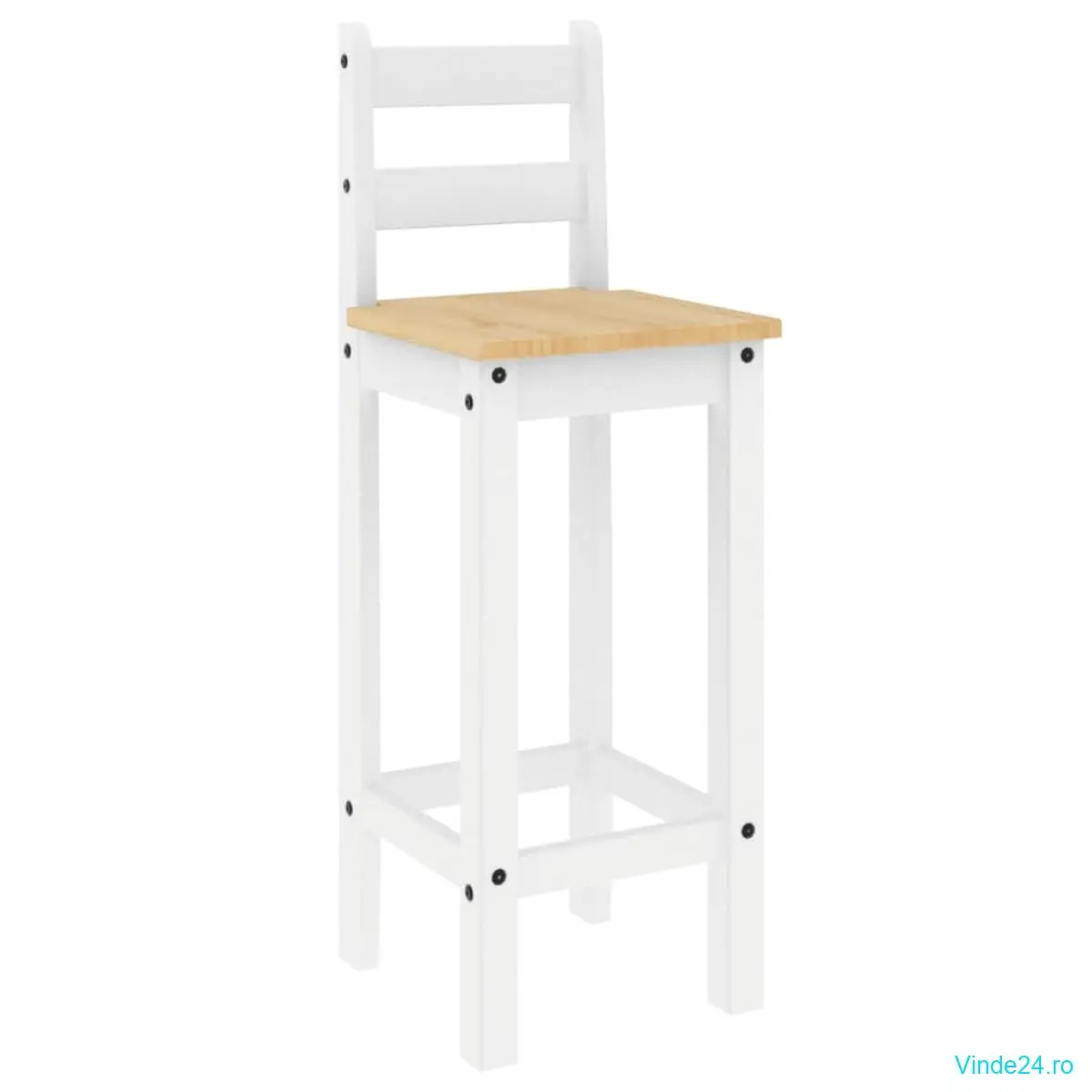 vidaXL Scaune de bar, 2 buc., alb, lemn masiv de pin