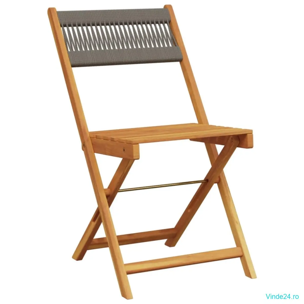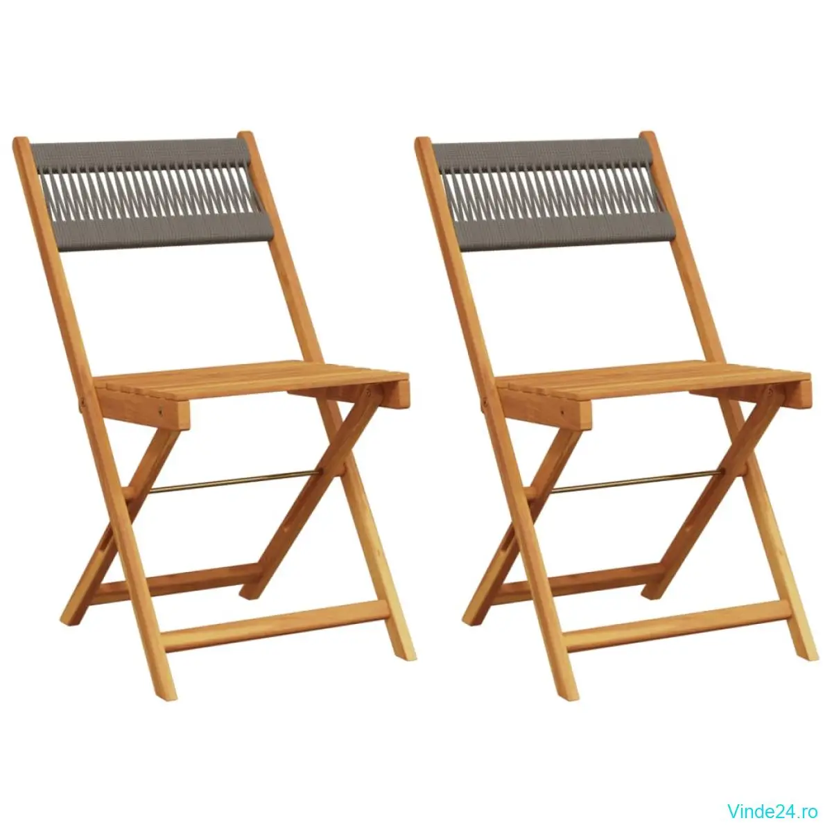 vidaXL Scaune de bistro, 2 buc., gri, lemn masiv acacia și funie