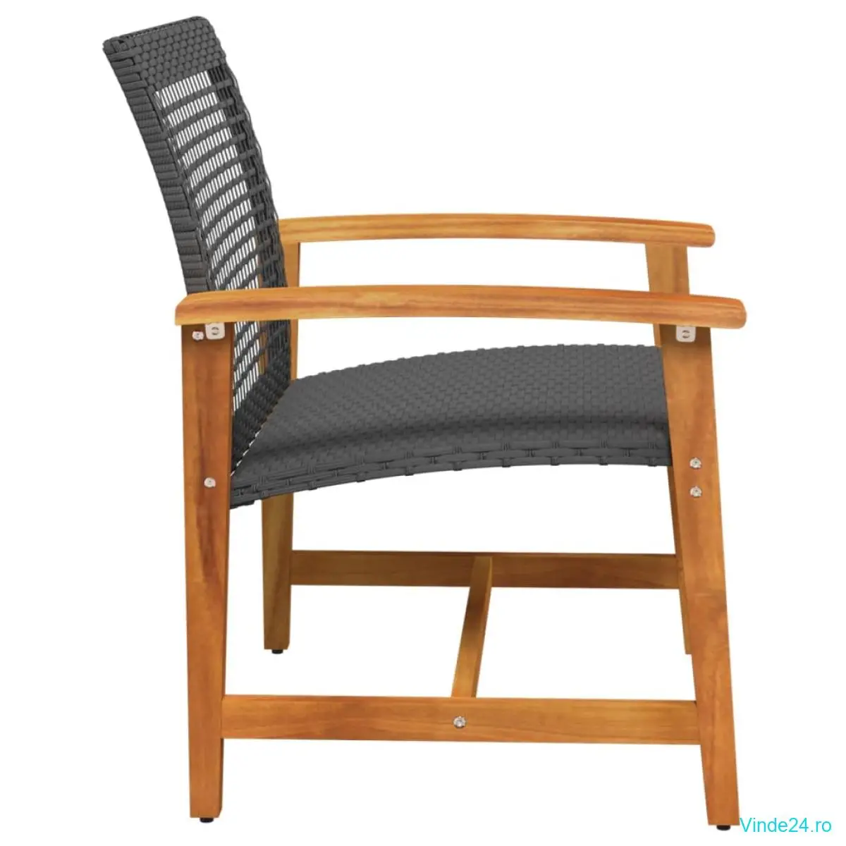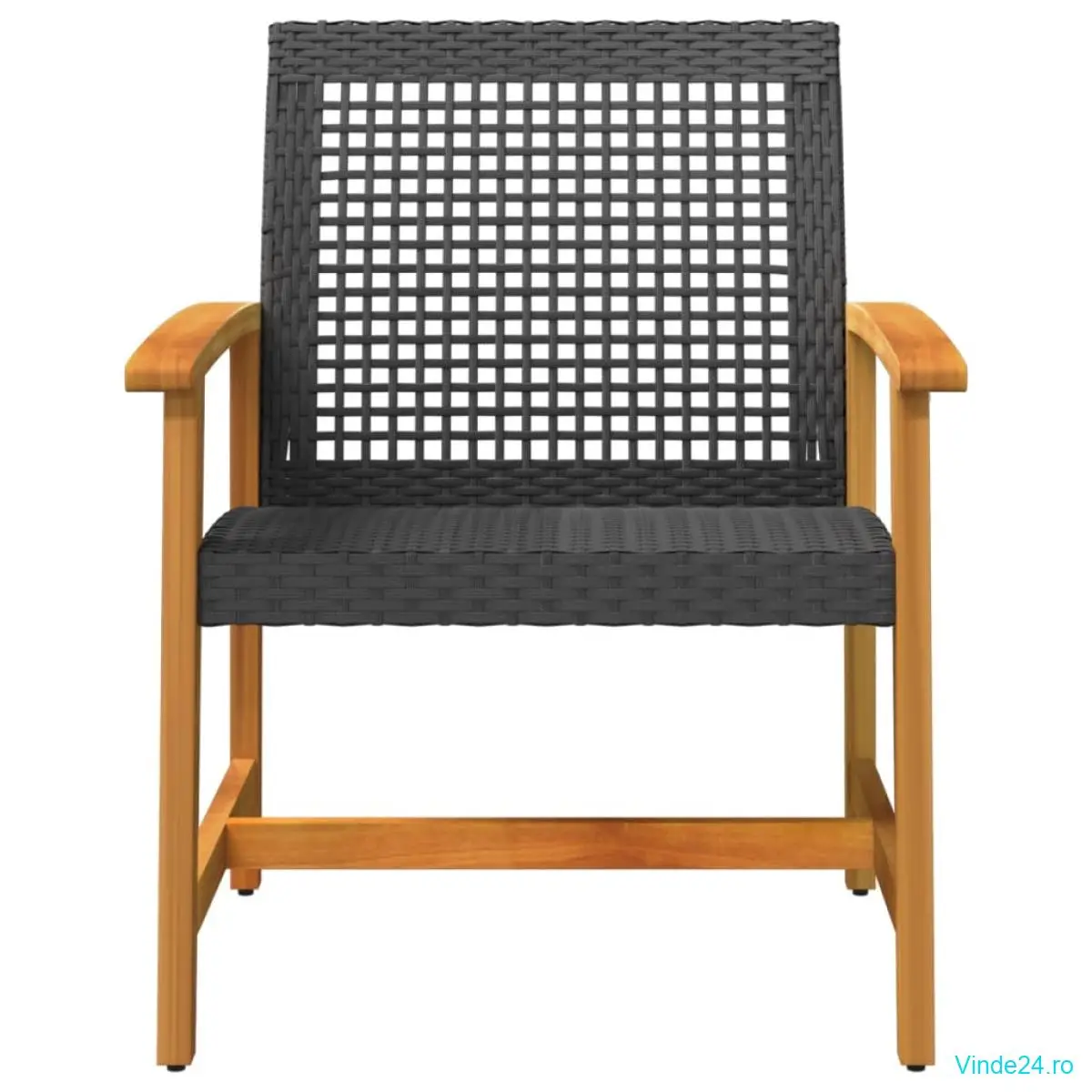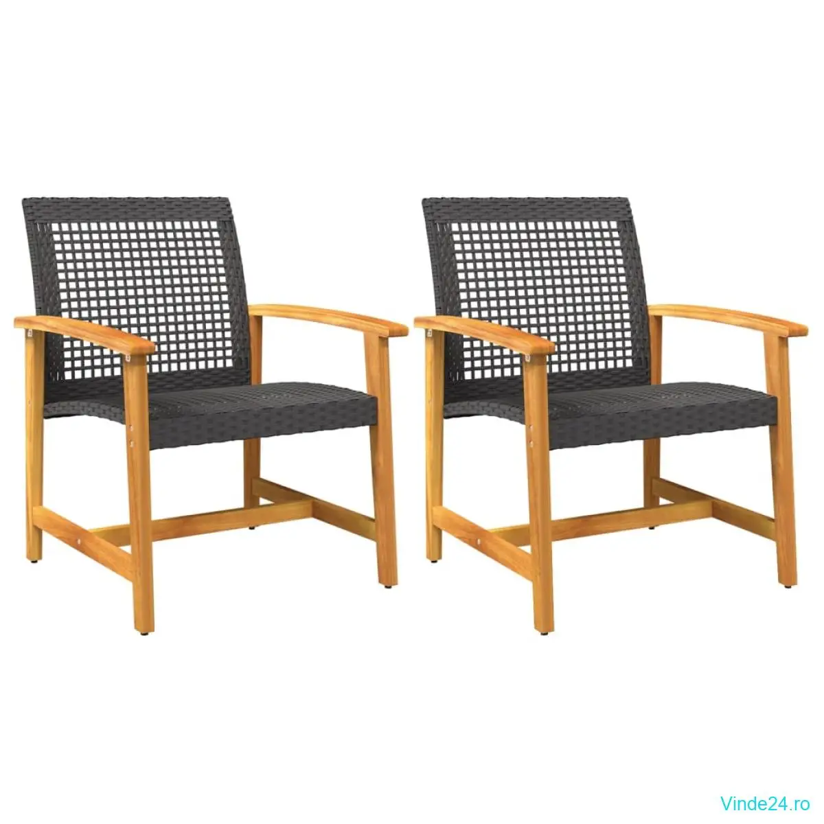 vidaXL Scaune de grădină, 2 buc., negru, poliratan și lemn de acacia