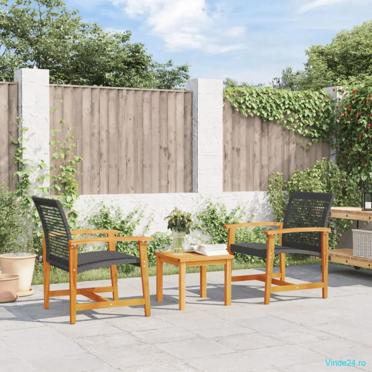 vidaXL Scaune de grădină, 2 buc., negru, poliratan și lemn de acacia