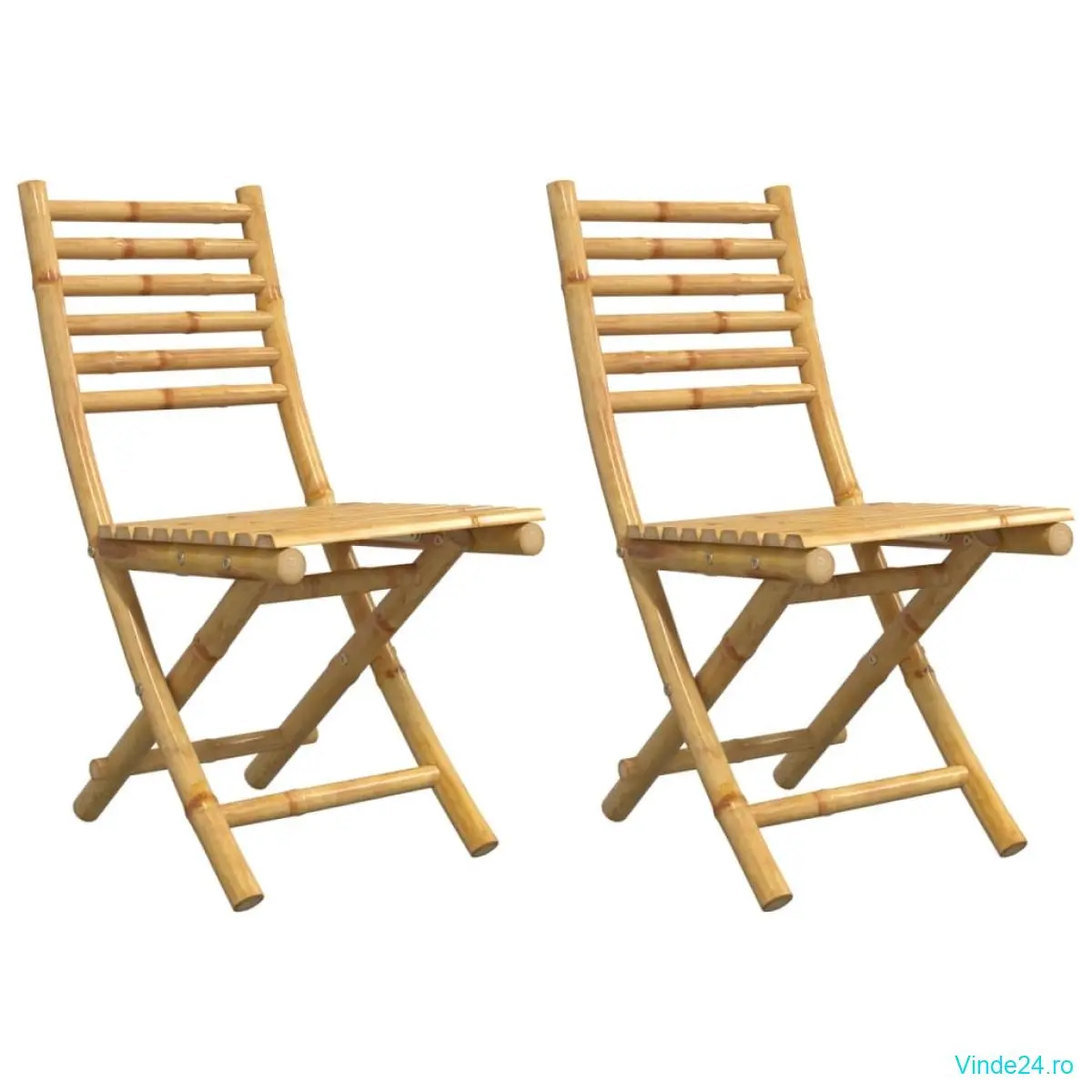 Aceste scaune de grădină pliabile, din bambus, au un design elegant și vor fi o alegere excelentă pentru mesele în aer liber, în grădină sau pe terasă.