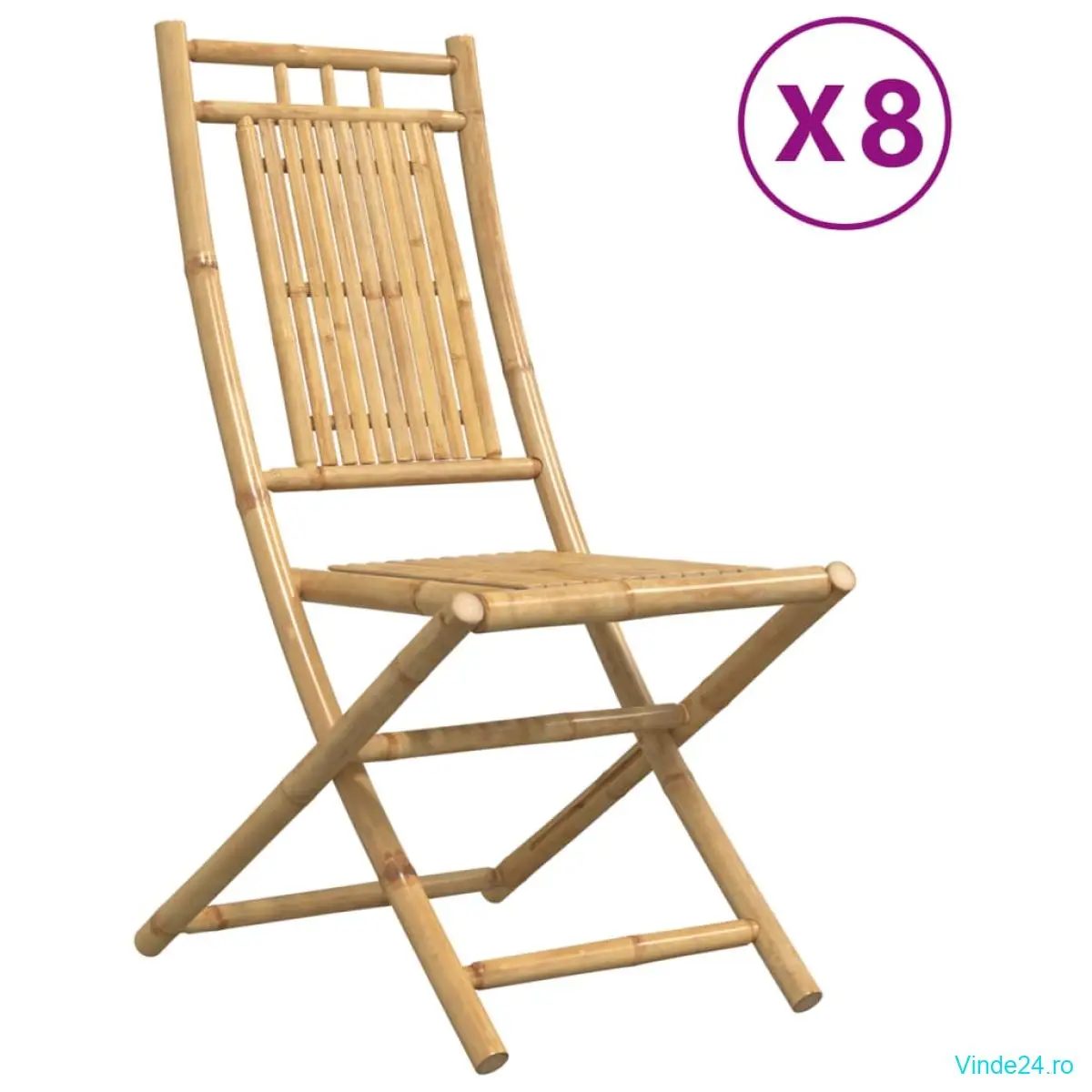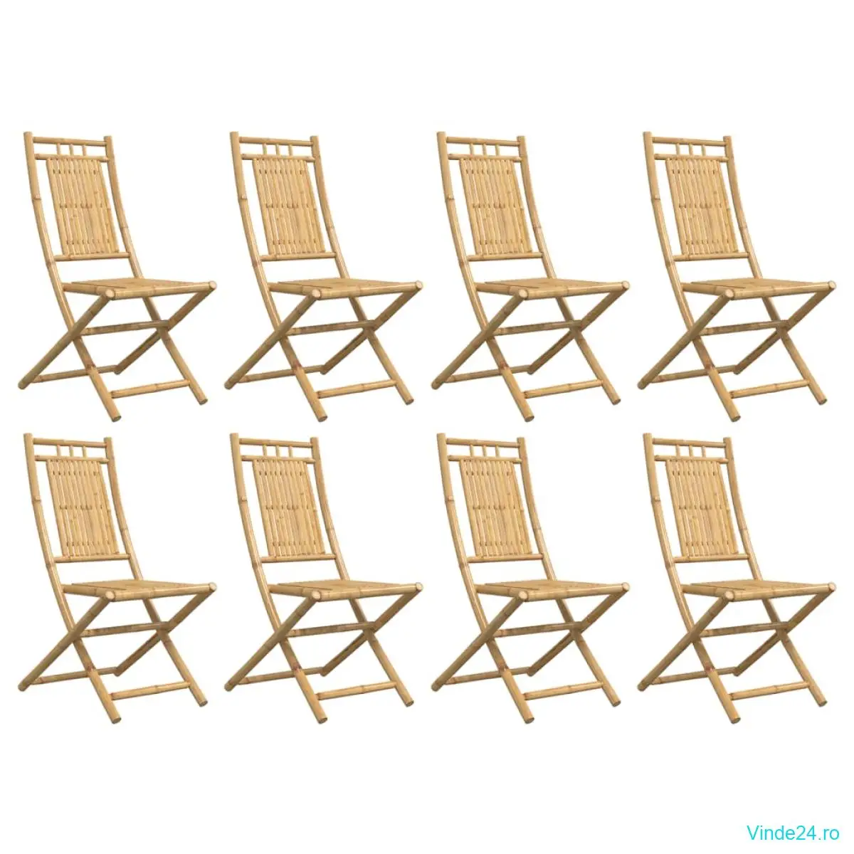 Aceste scaune de grădină pliabile, din bambus, au un design elegant și vor fi o alegere excelentă pentru mesele în aer liber, în grădină sau pe terasă.
