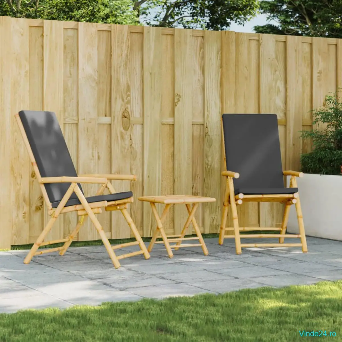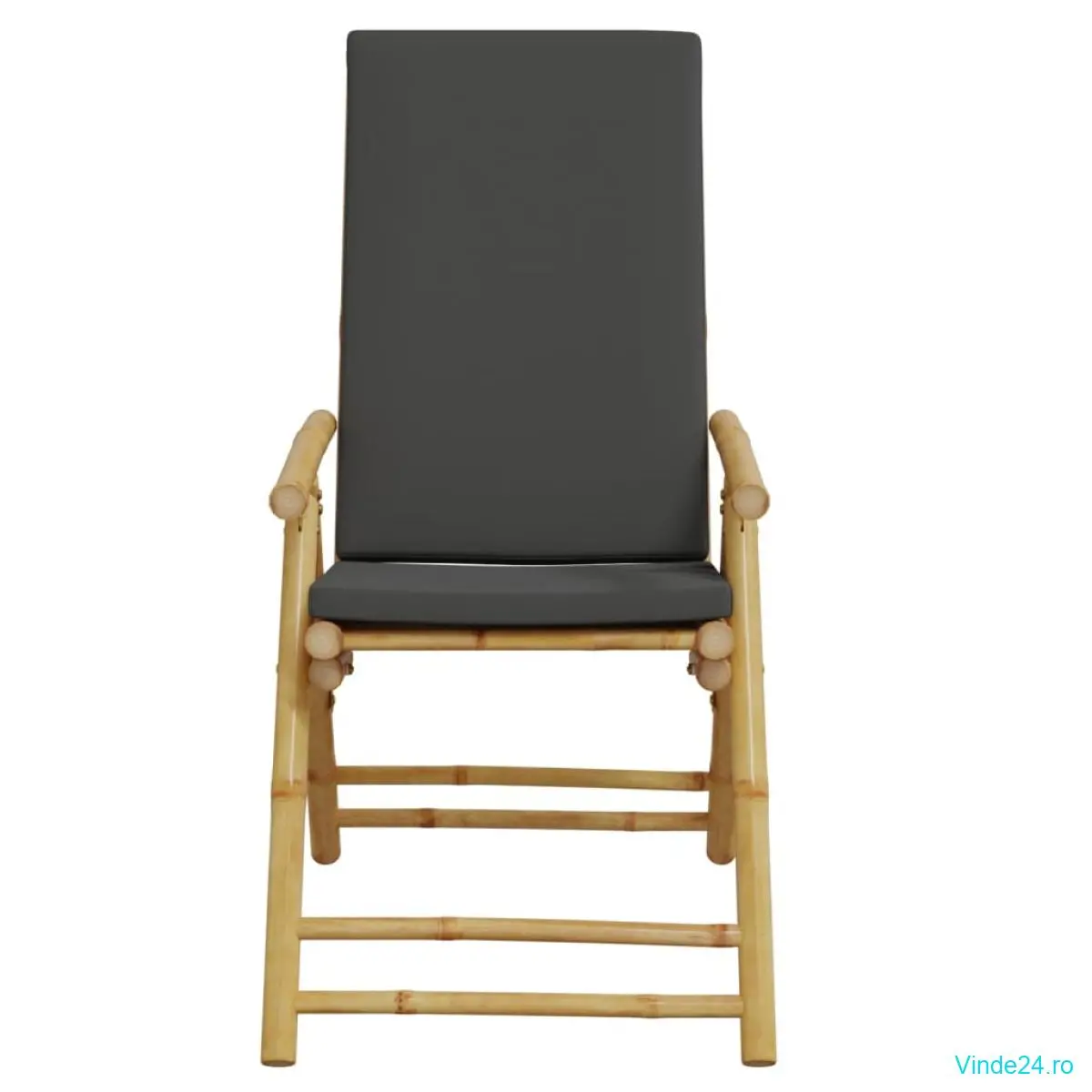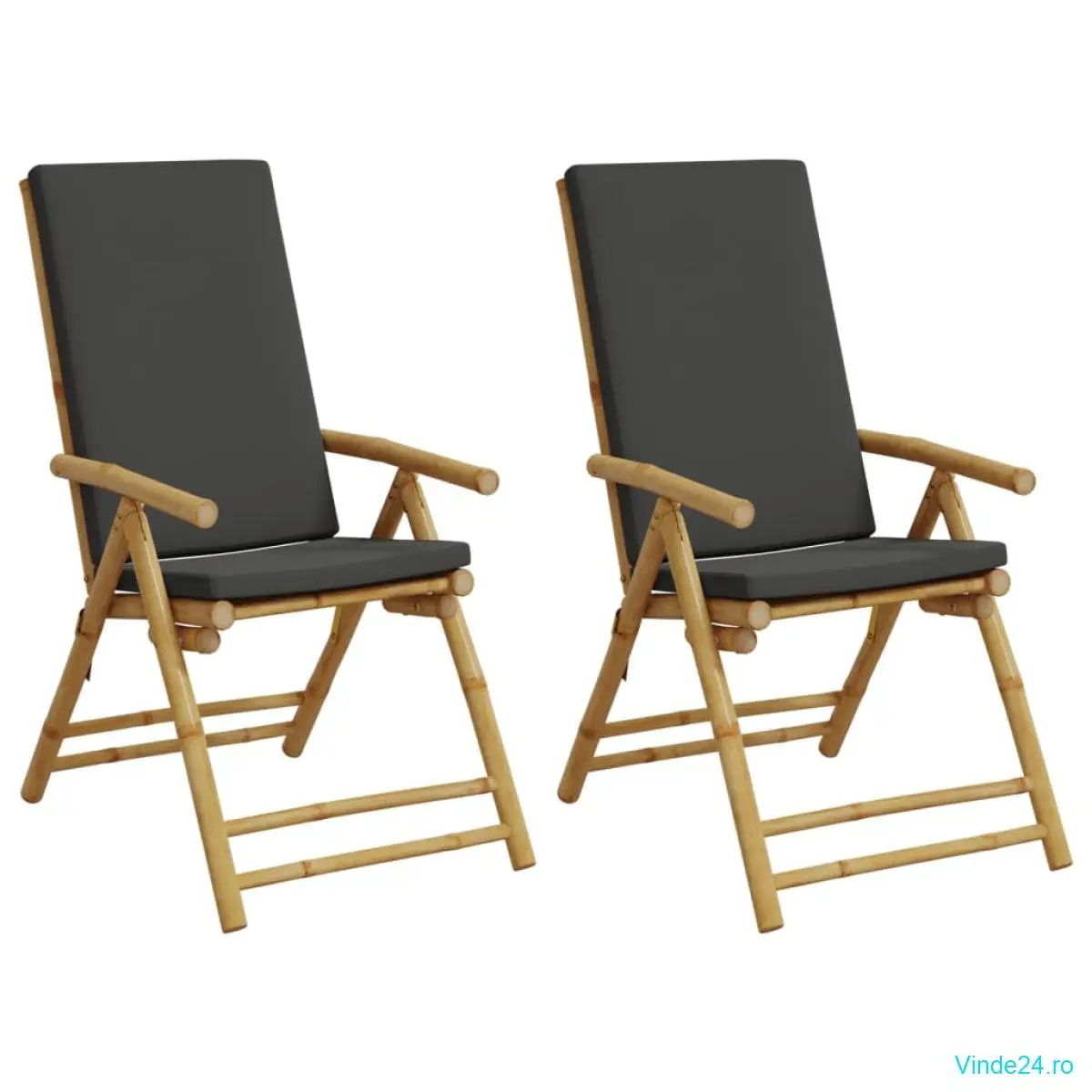 vidaXL Scaune de grădină pliabile rabatabile, cu perne, 2 buc., bambus