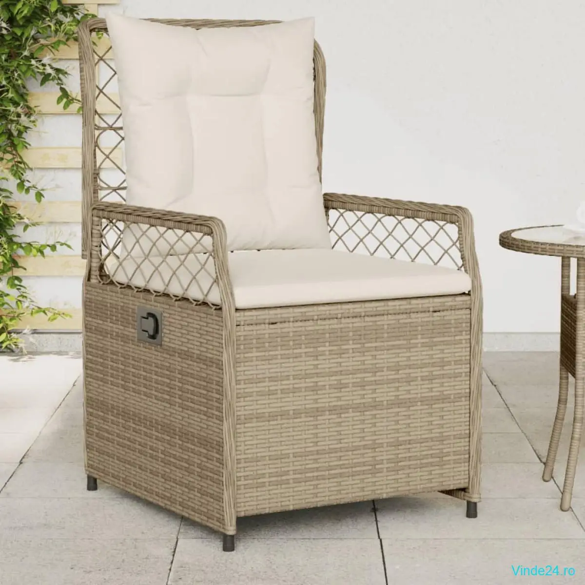 vidaXL Scaune de grădină rabatabile, 2 buc., bej, poliratan