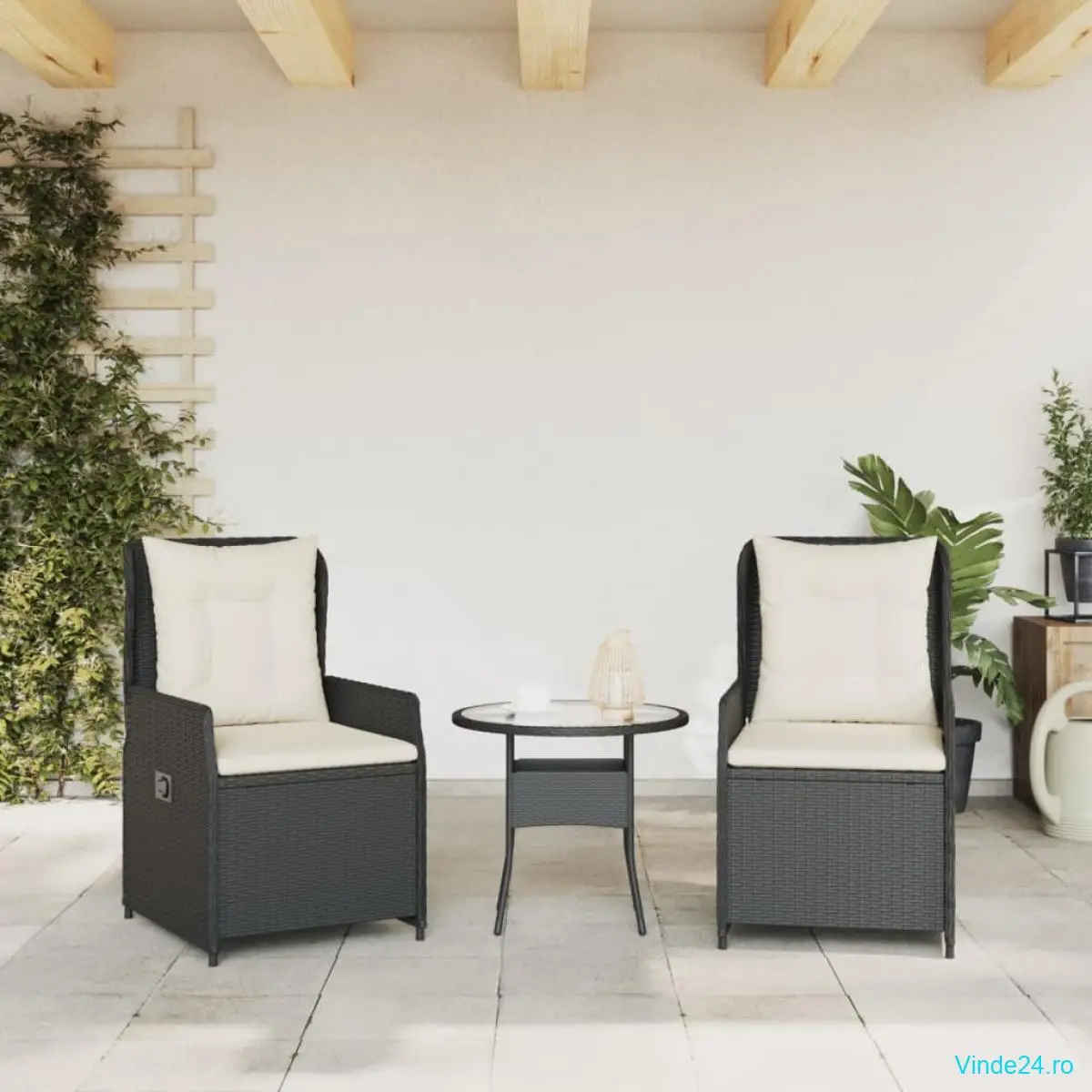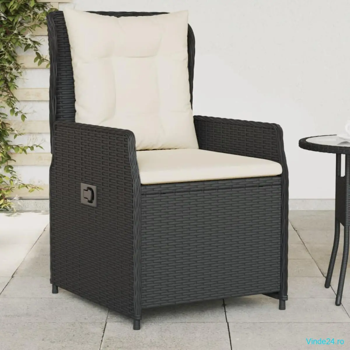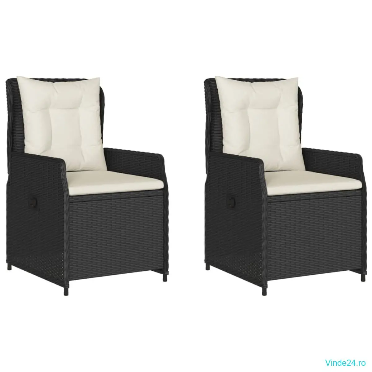vidaXL Scaune de grădină rabatabile, 2 buc., negru, poliratan