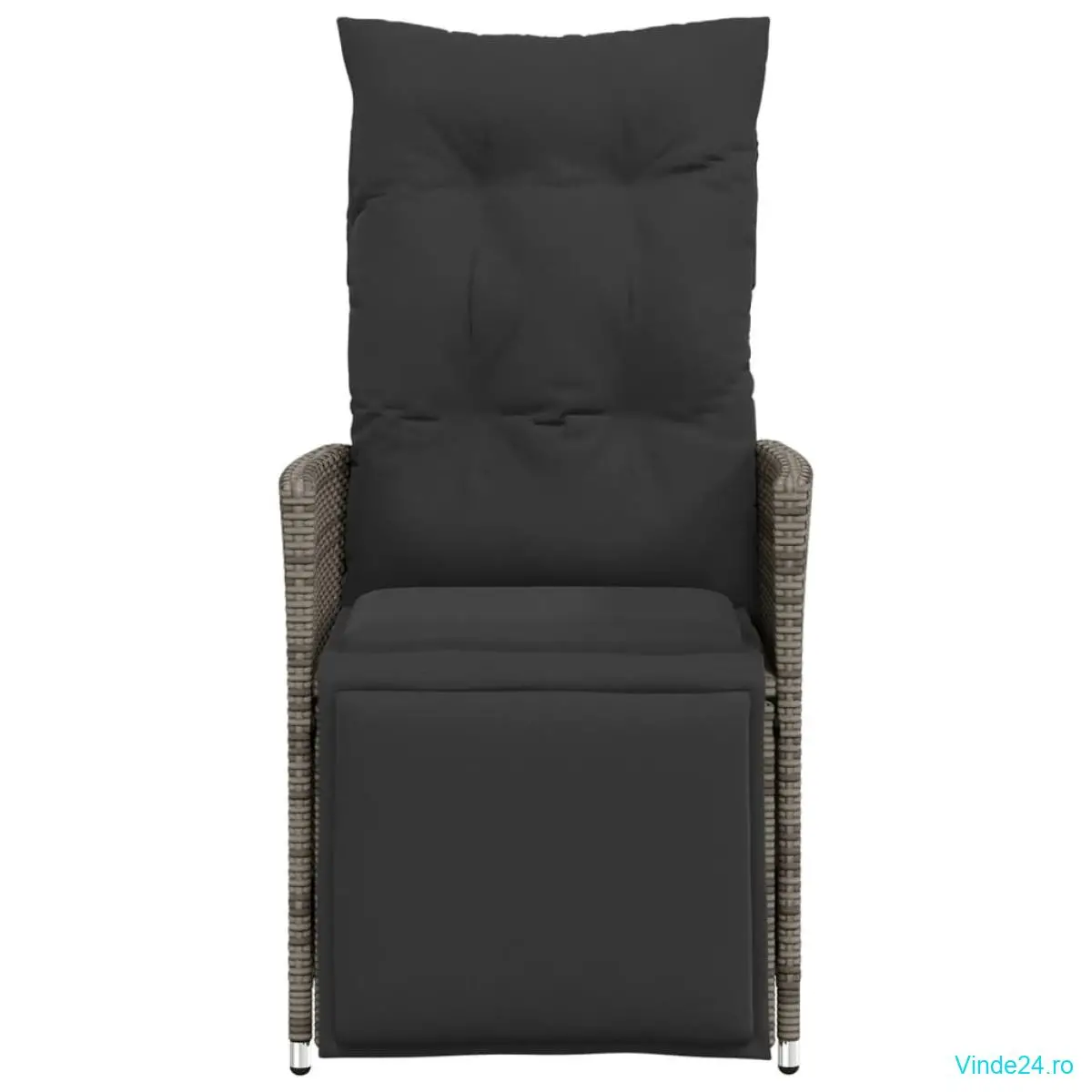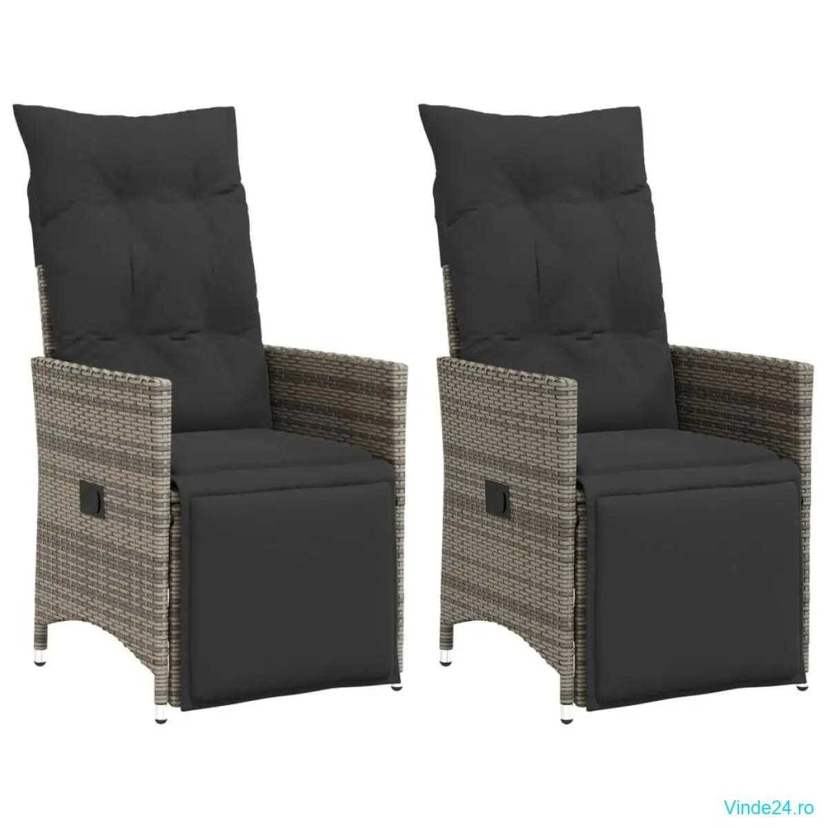 vidaXL Scaune de grădină rabatabile cu perne, 2 buc., gri, poliratan
