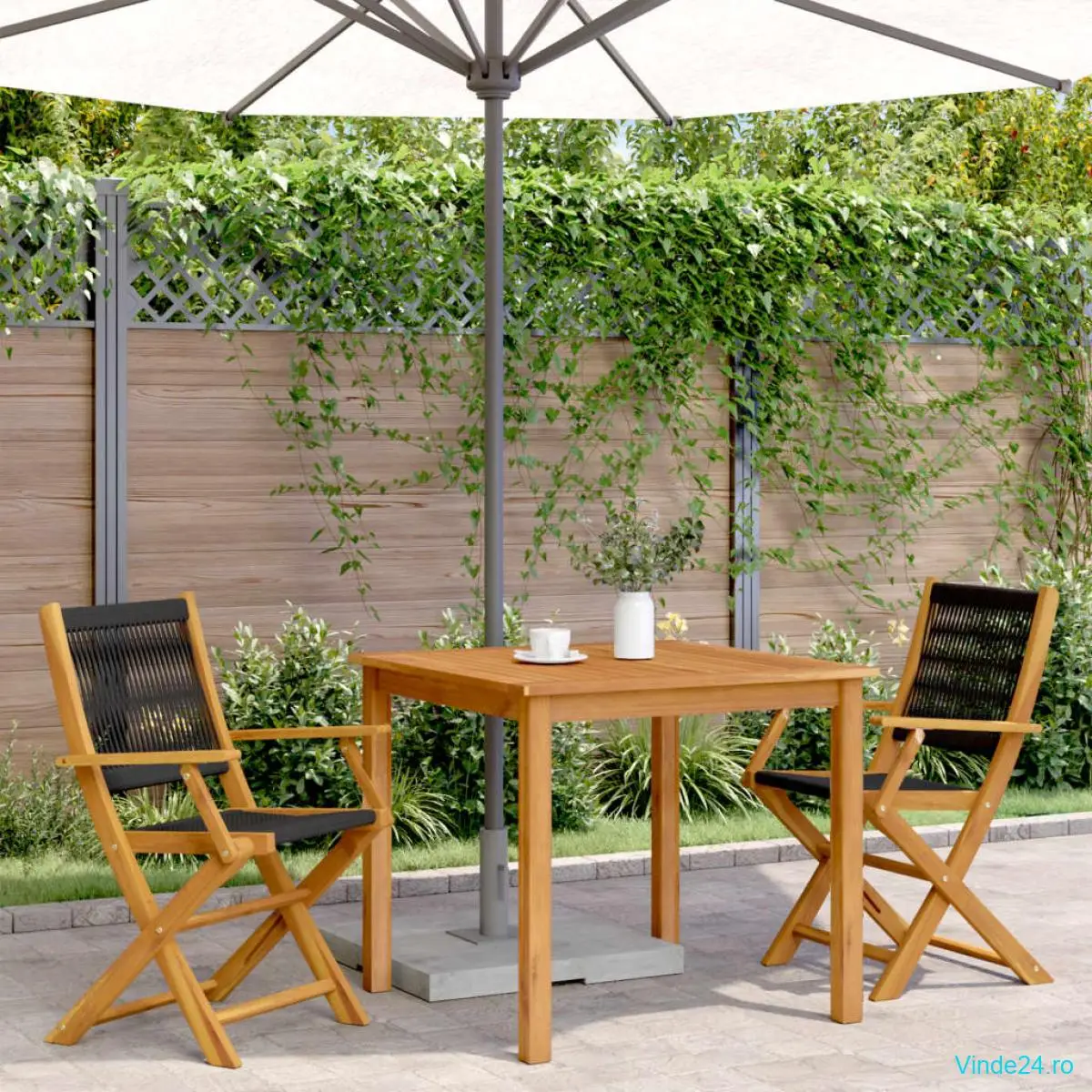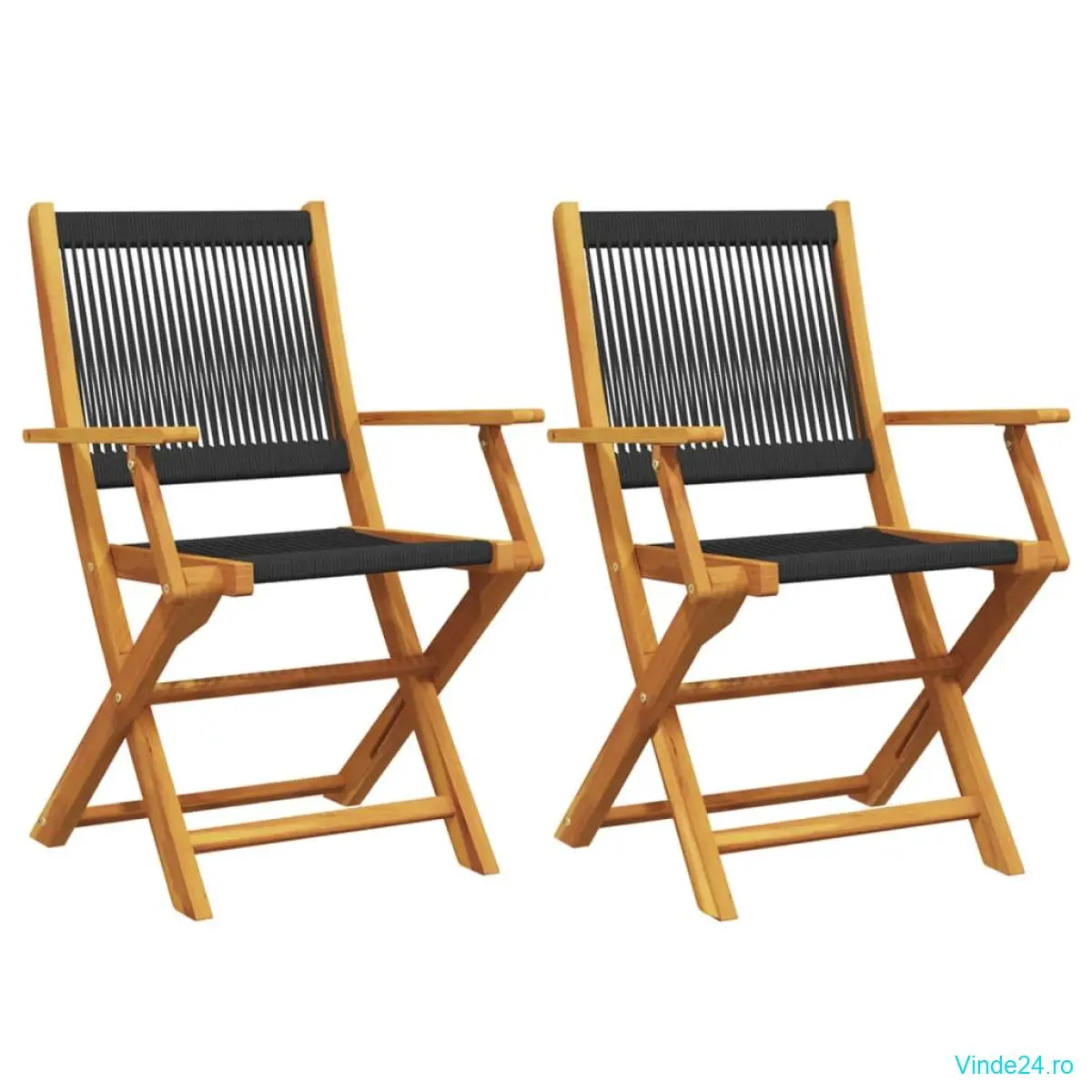 vidaXL Scaune grădină 2 buc. negru, lemn masiv acacia și polipropilenă