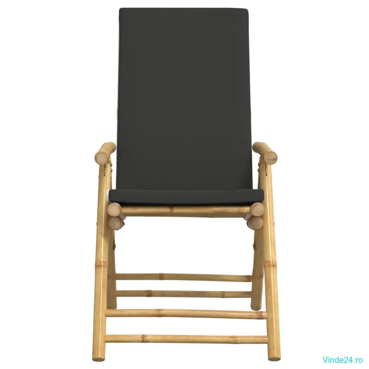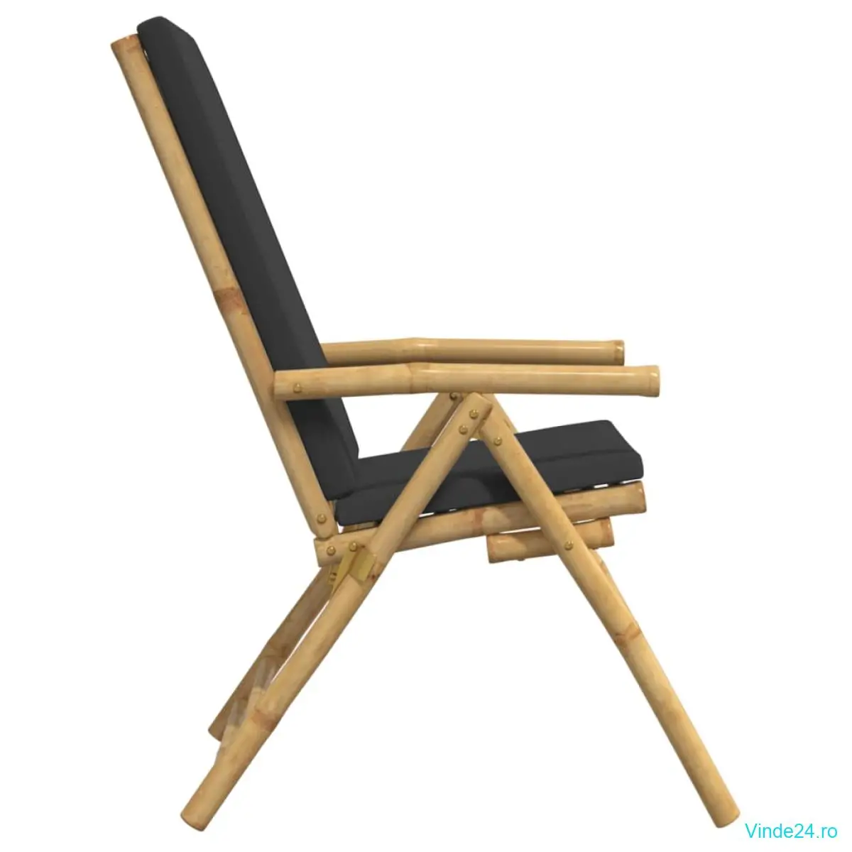 vidaXL Scaune pliabile/rabatabile, 6 buc., cu perne gri închis, bambus