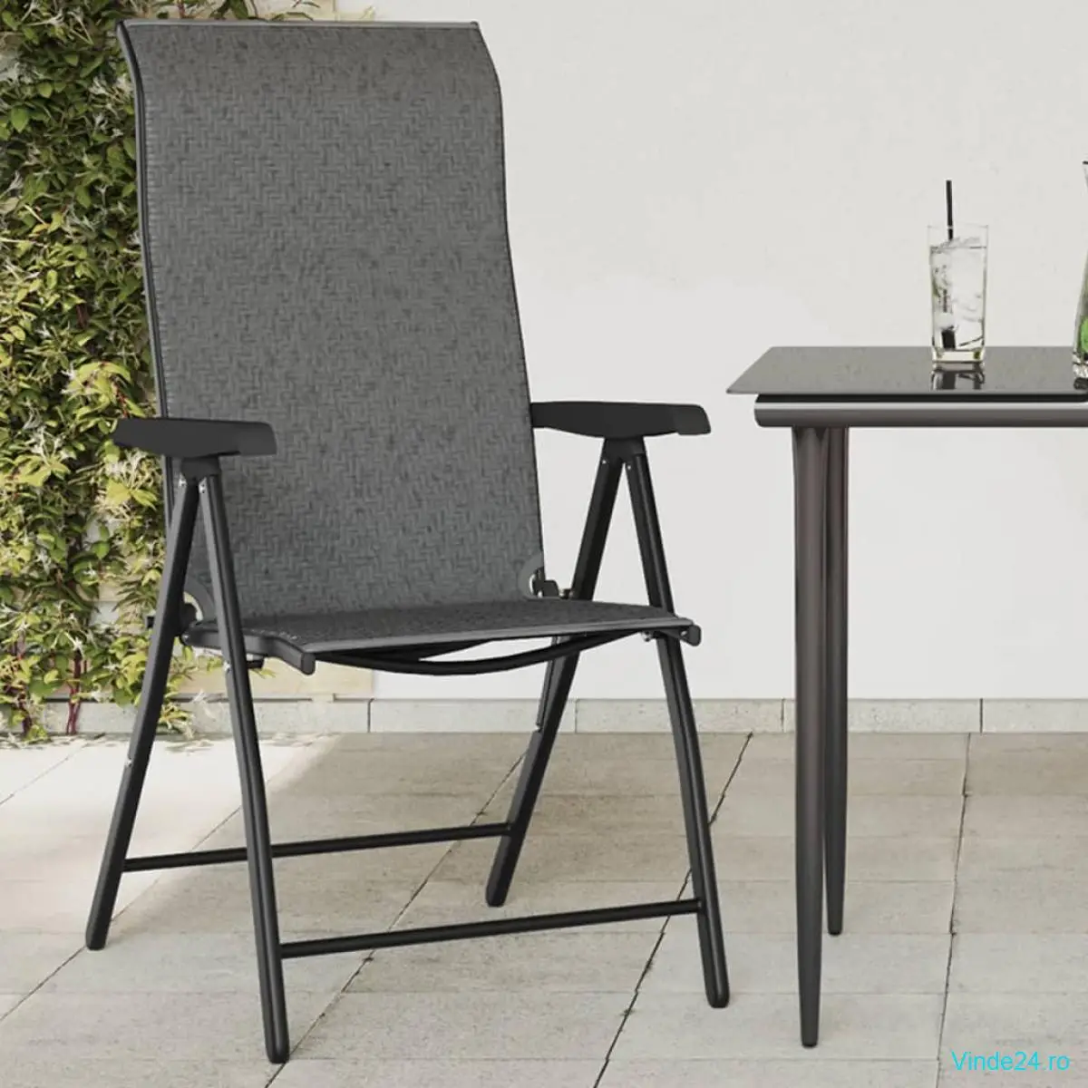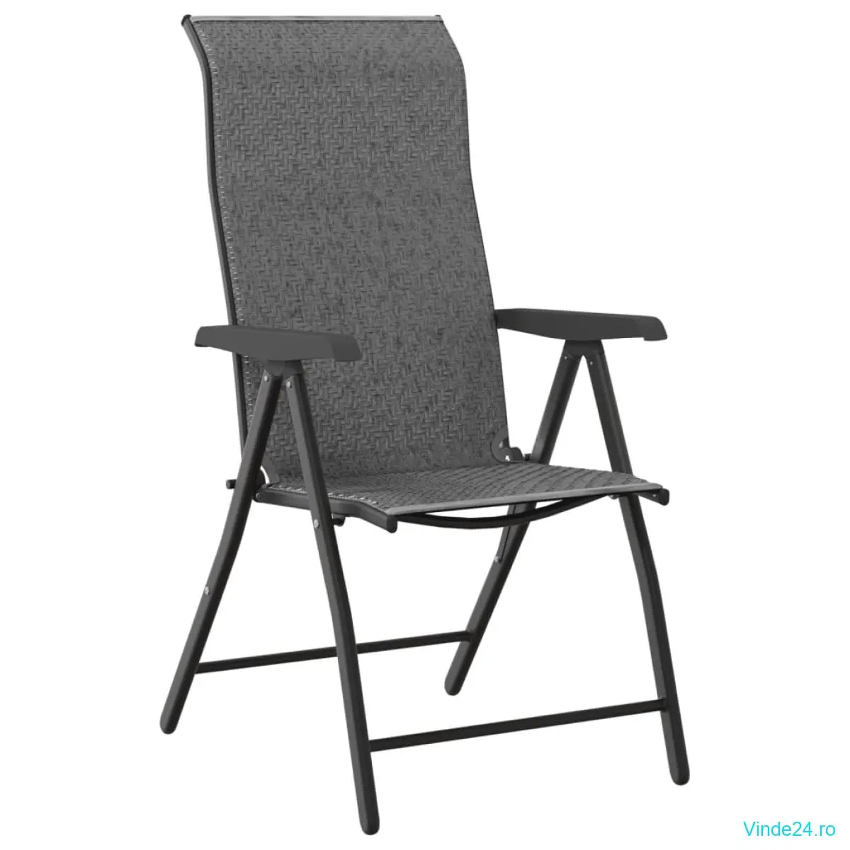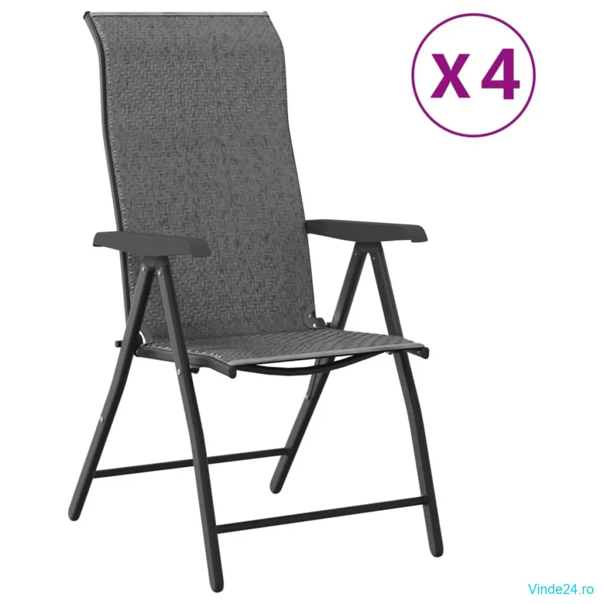 vidaXL Scaune Rabatabile De Gradina 4 buc., gri, poliratan