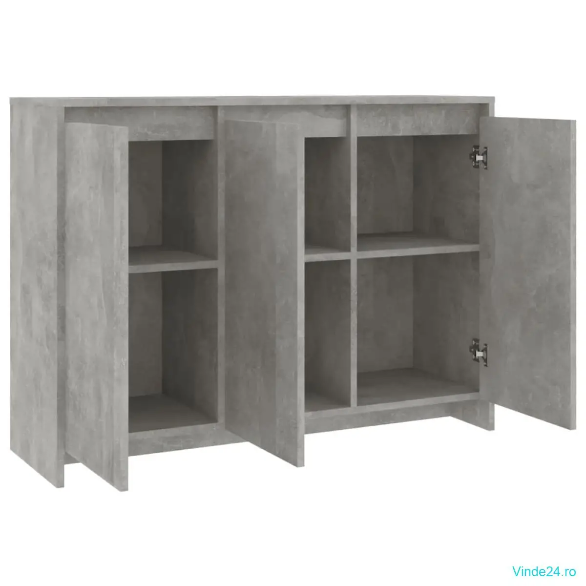 Acest dulap lateral are o construcție robustă și durabilă. Având 3 uși, dulapul oferă spațiu amplu de depozitare pentru cărți, aparate multimedia și alte articole. Blatul robust este ideal pentru a expune obiecte decorative, rame foto sau plante în ghiveci.
