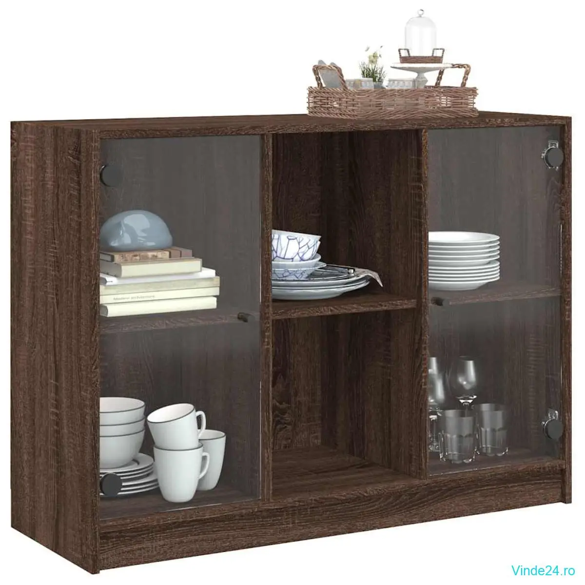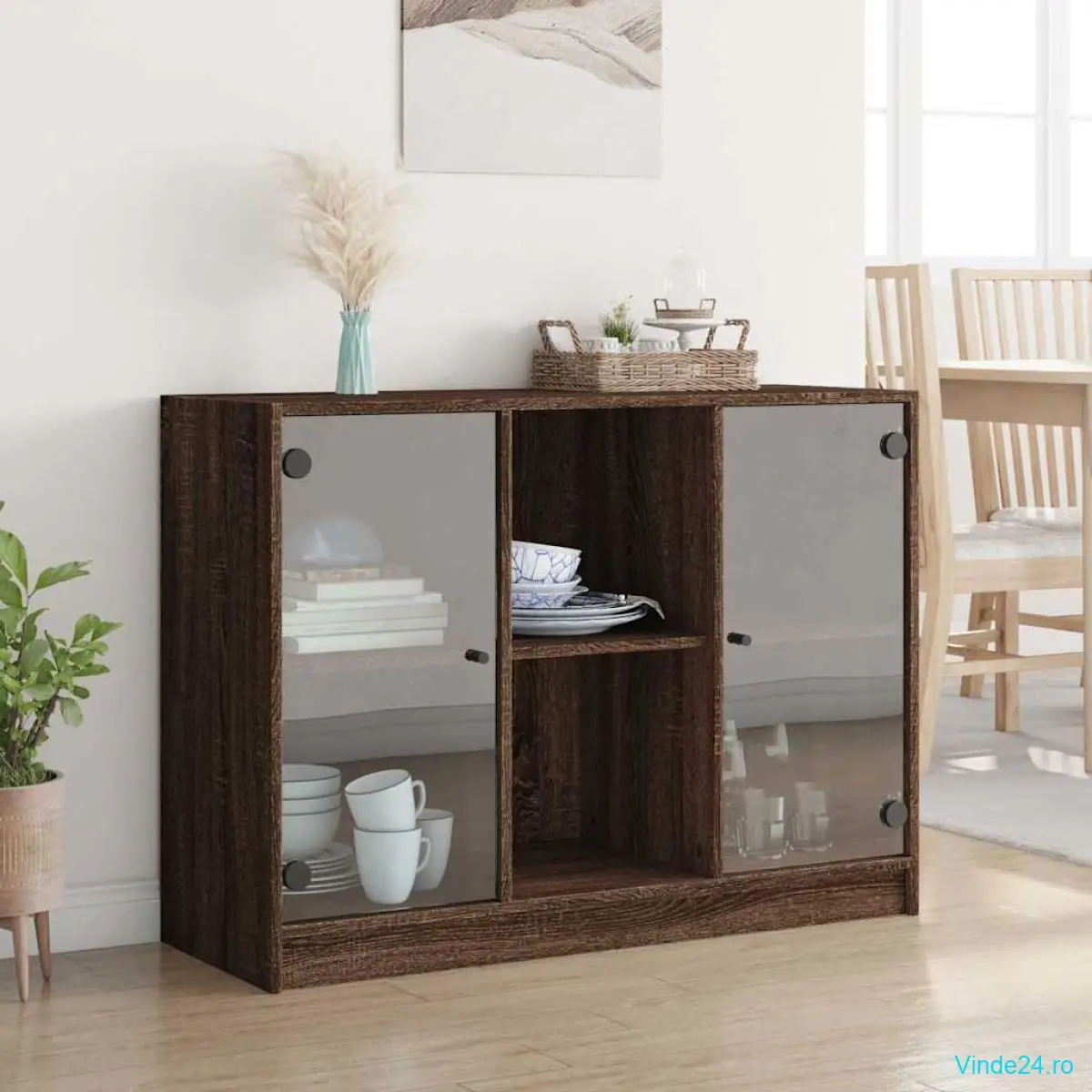- Blat robust și stabil: Blatul acestui dulap lateral este perfect pentru a vă expune obiectele decorative, tablourile înrămate și plantele în ghiveci.