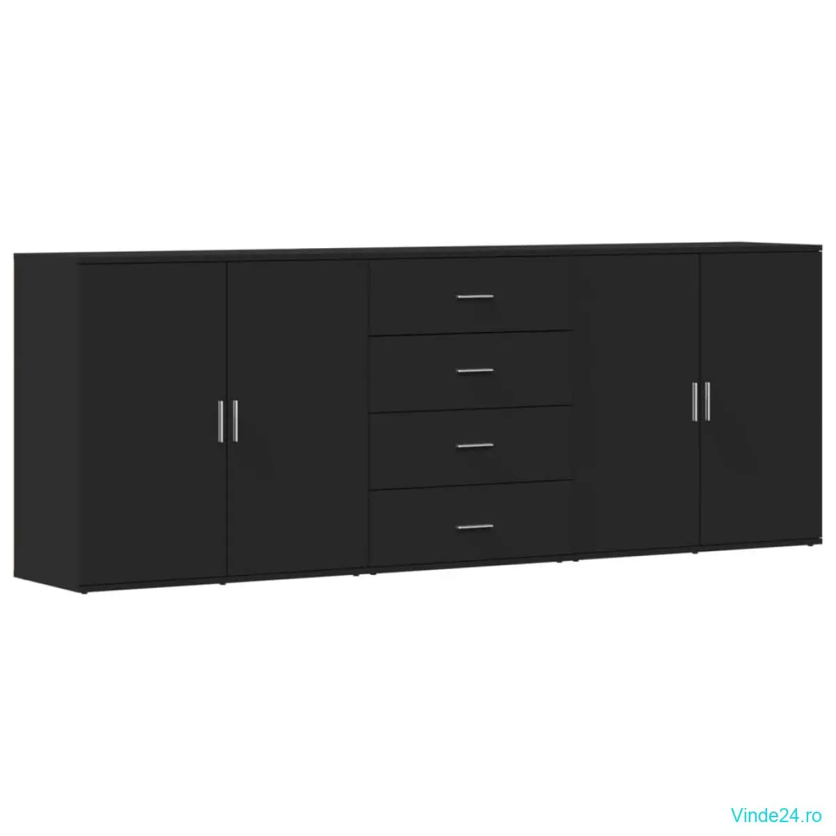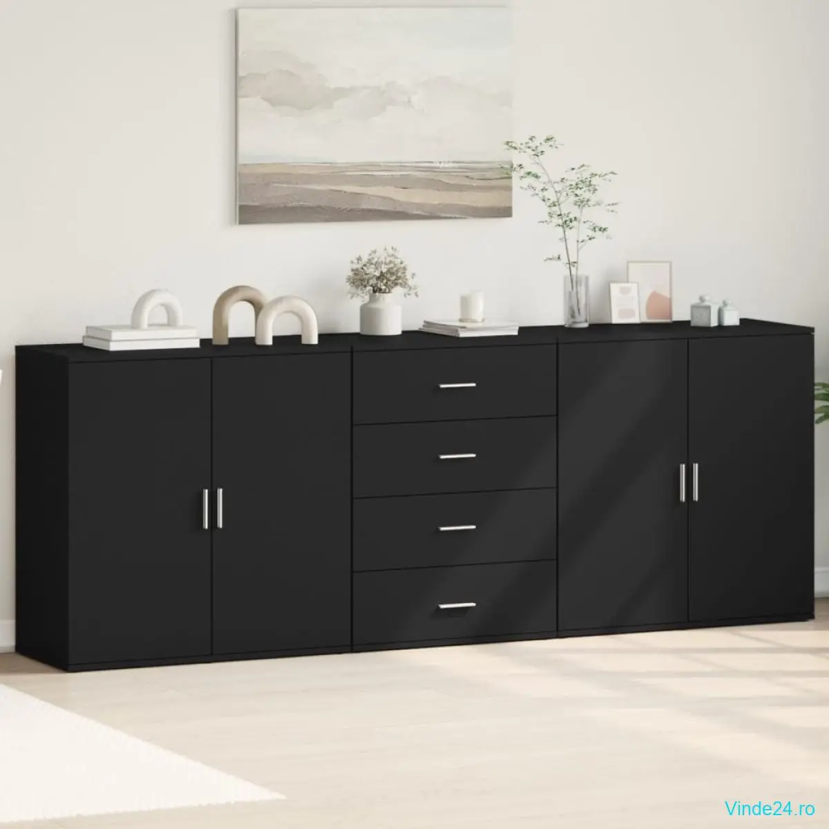 vidaXL Servante, 3 piese, negru, lemn prelucrat
