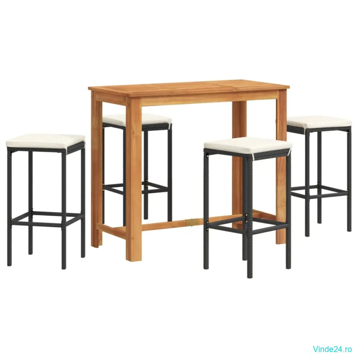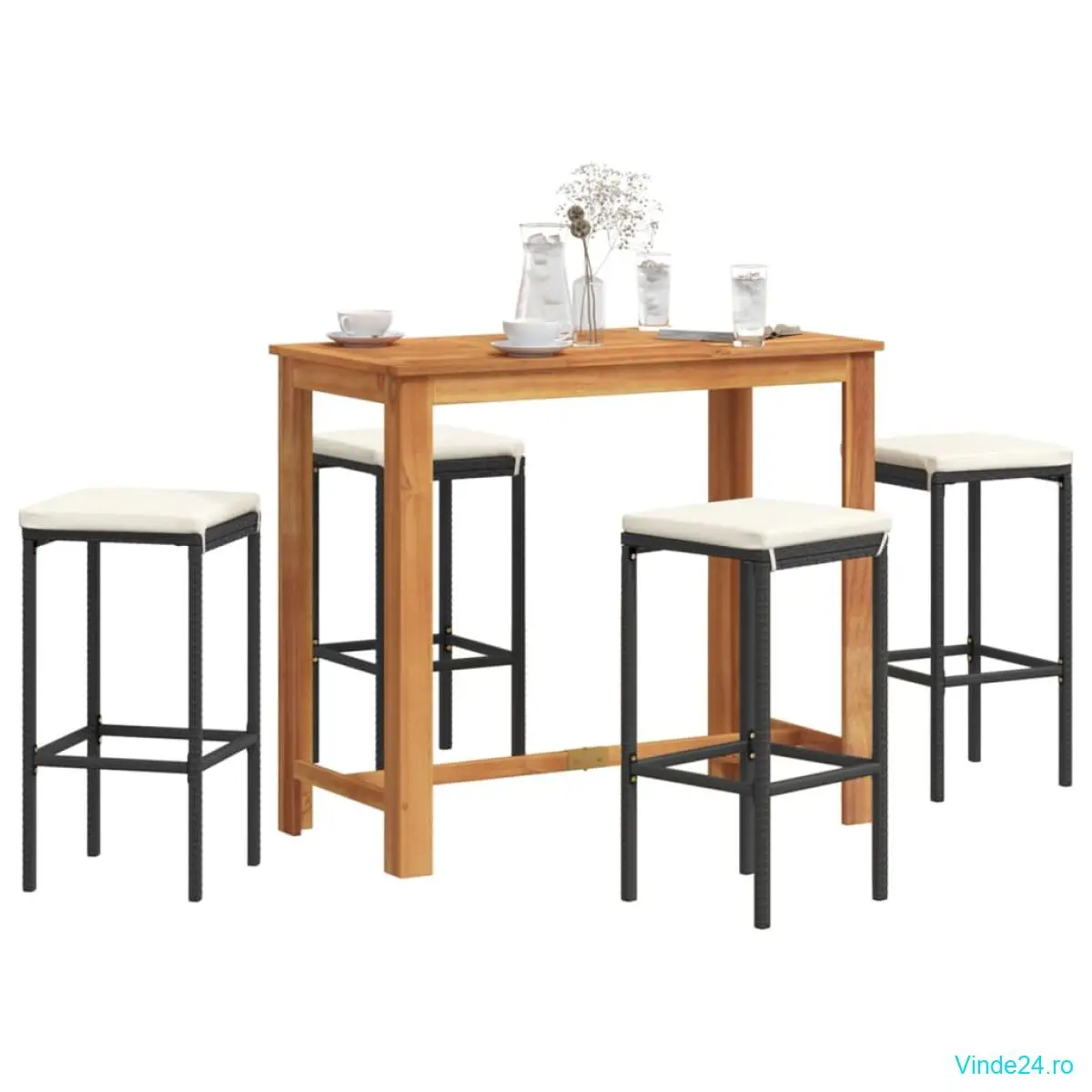 vidaXL Set bar de grădină 5 piese negru lemn masiv acacia și poliratan