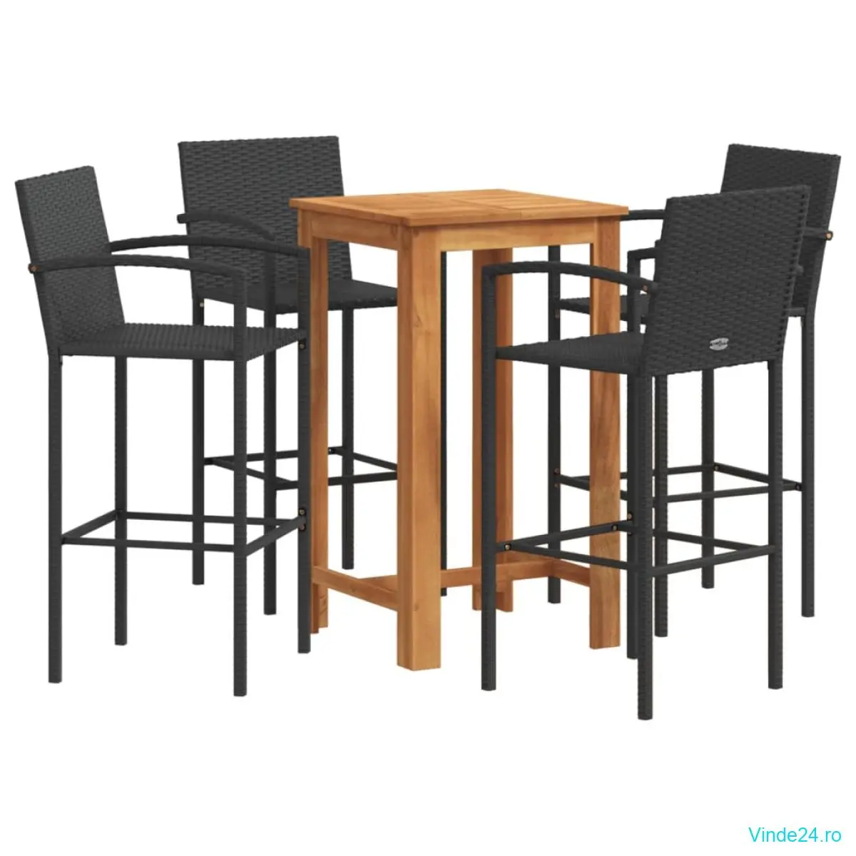 vidaXL Set bar de grădină 5 piese negru lemn masiv acacia și poliratan
