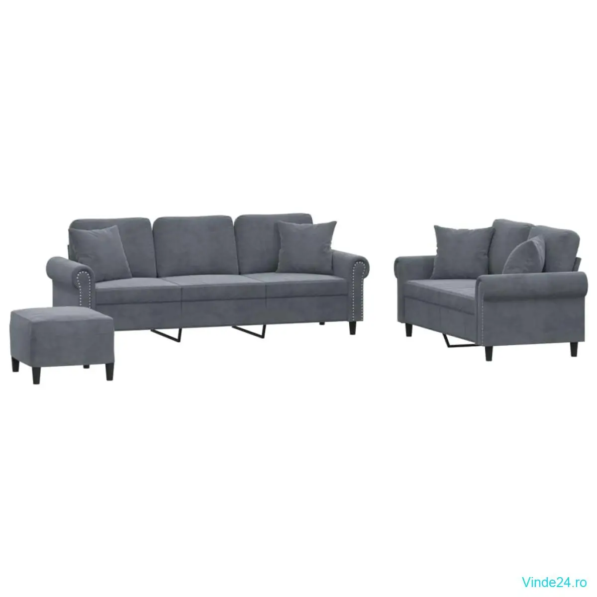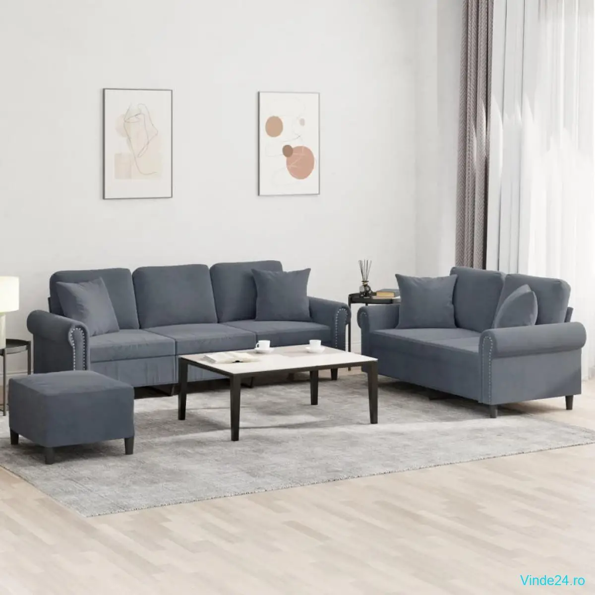 vidaXL Set canapea cu perne, 3 piese, gri închis, catifea