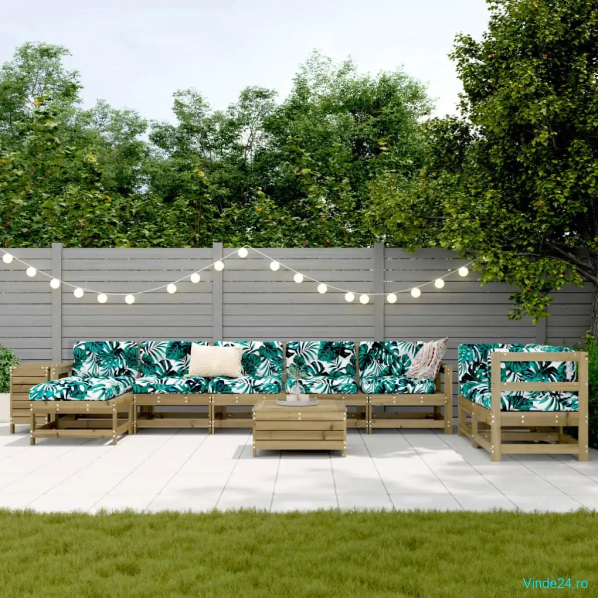 vidaXL Set canapea de grădină, 10 piese, lemn de pin tratat