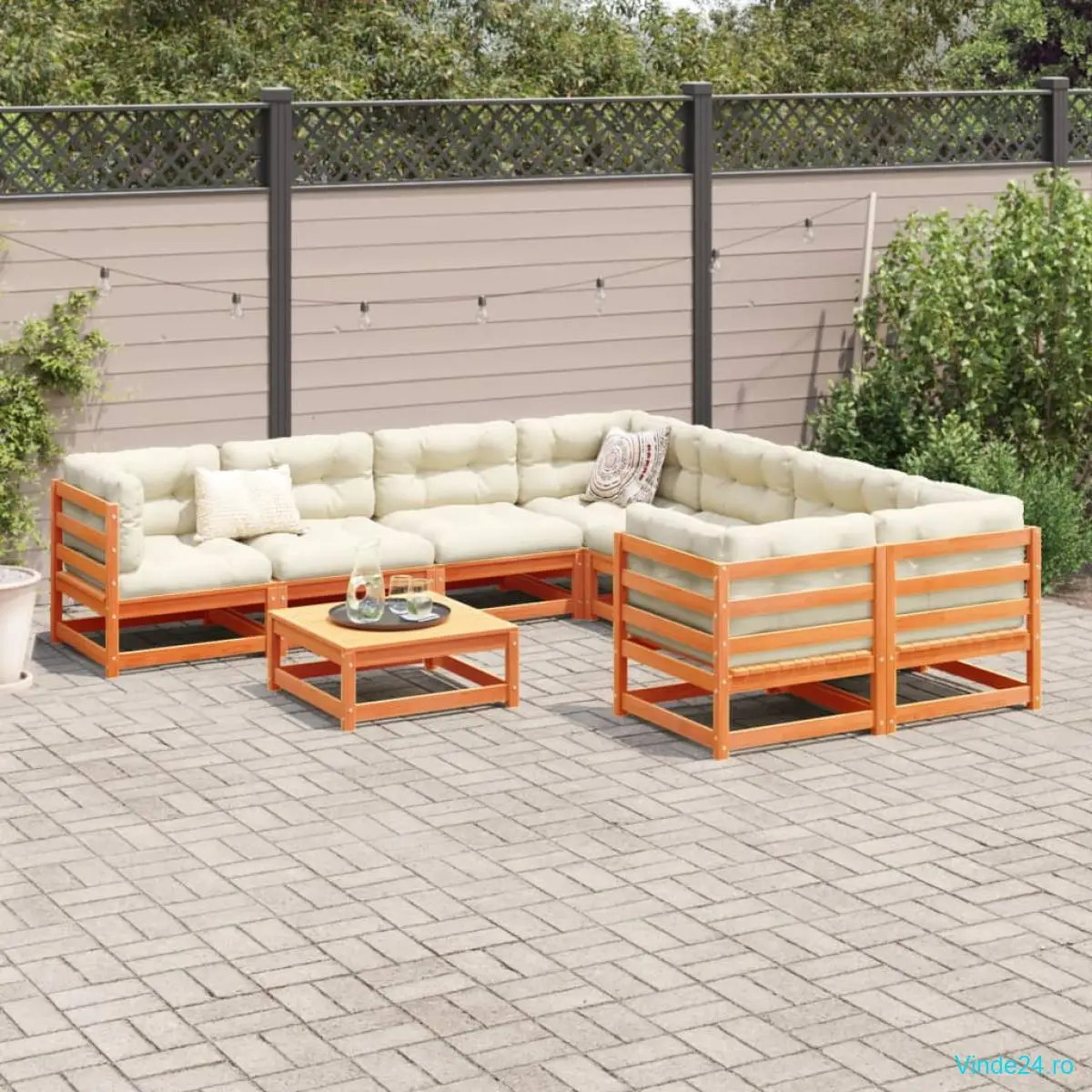 vidaXL Set canapea de grădină, 9 piese, maro ceruit, lemn masiv de pin