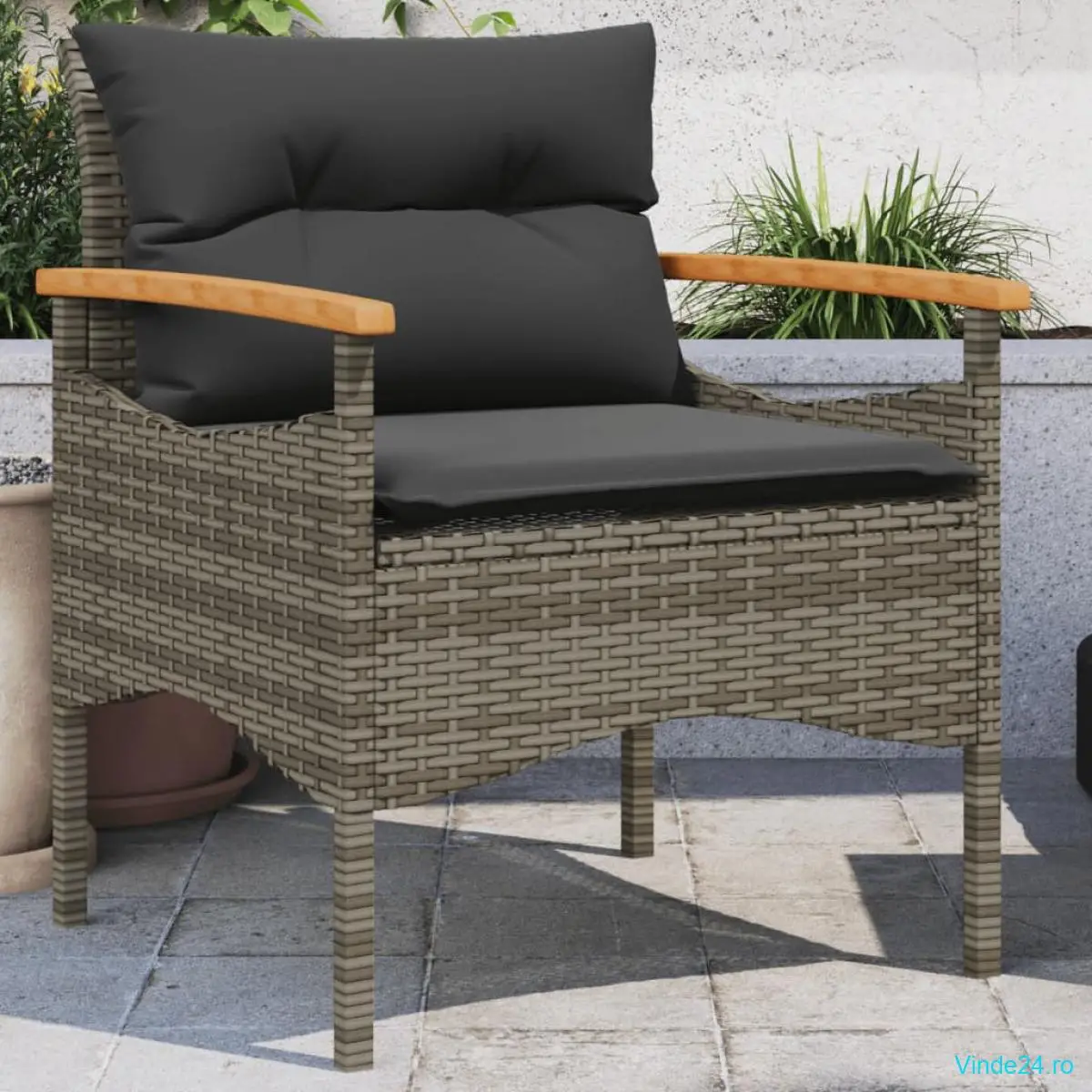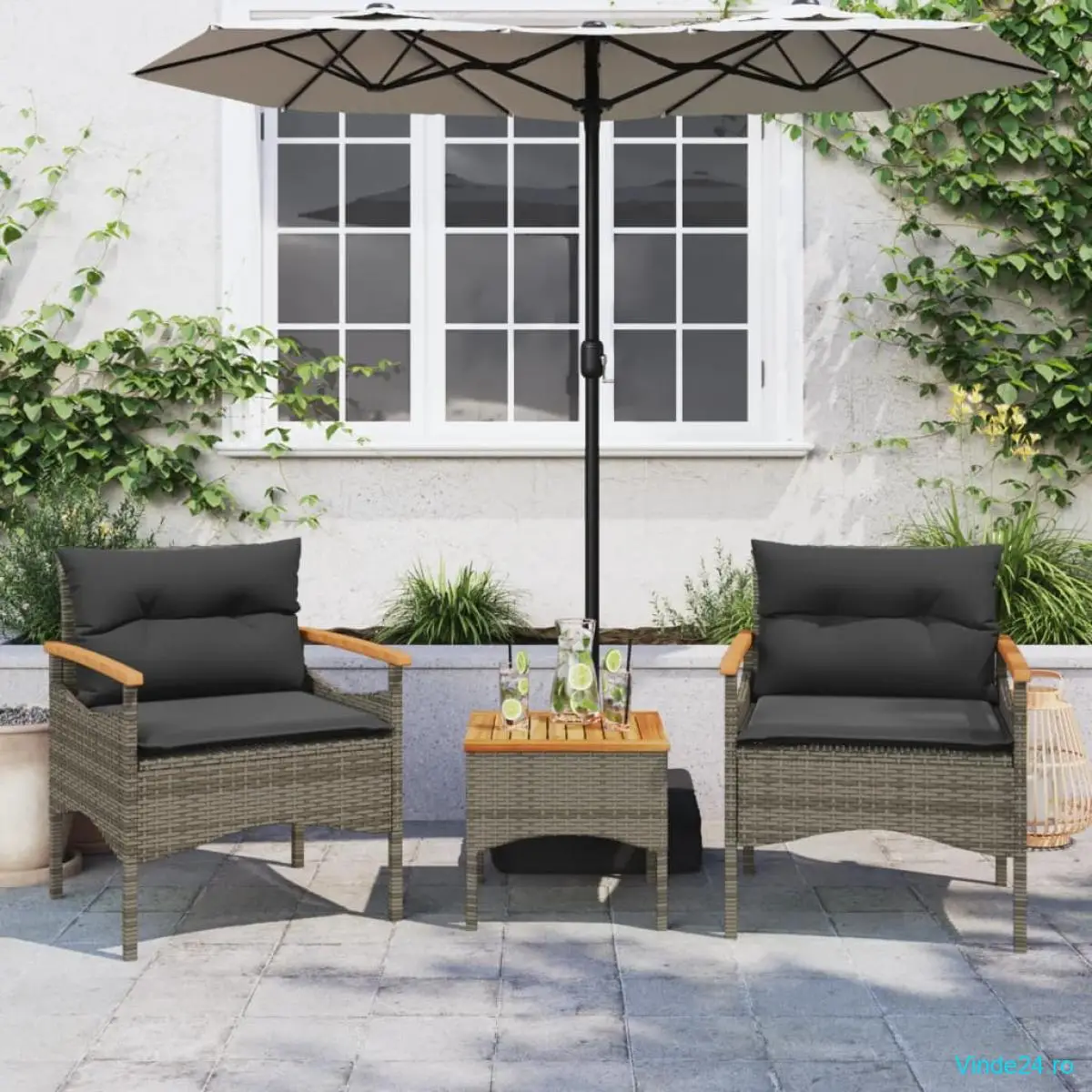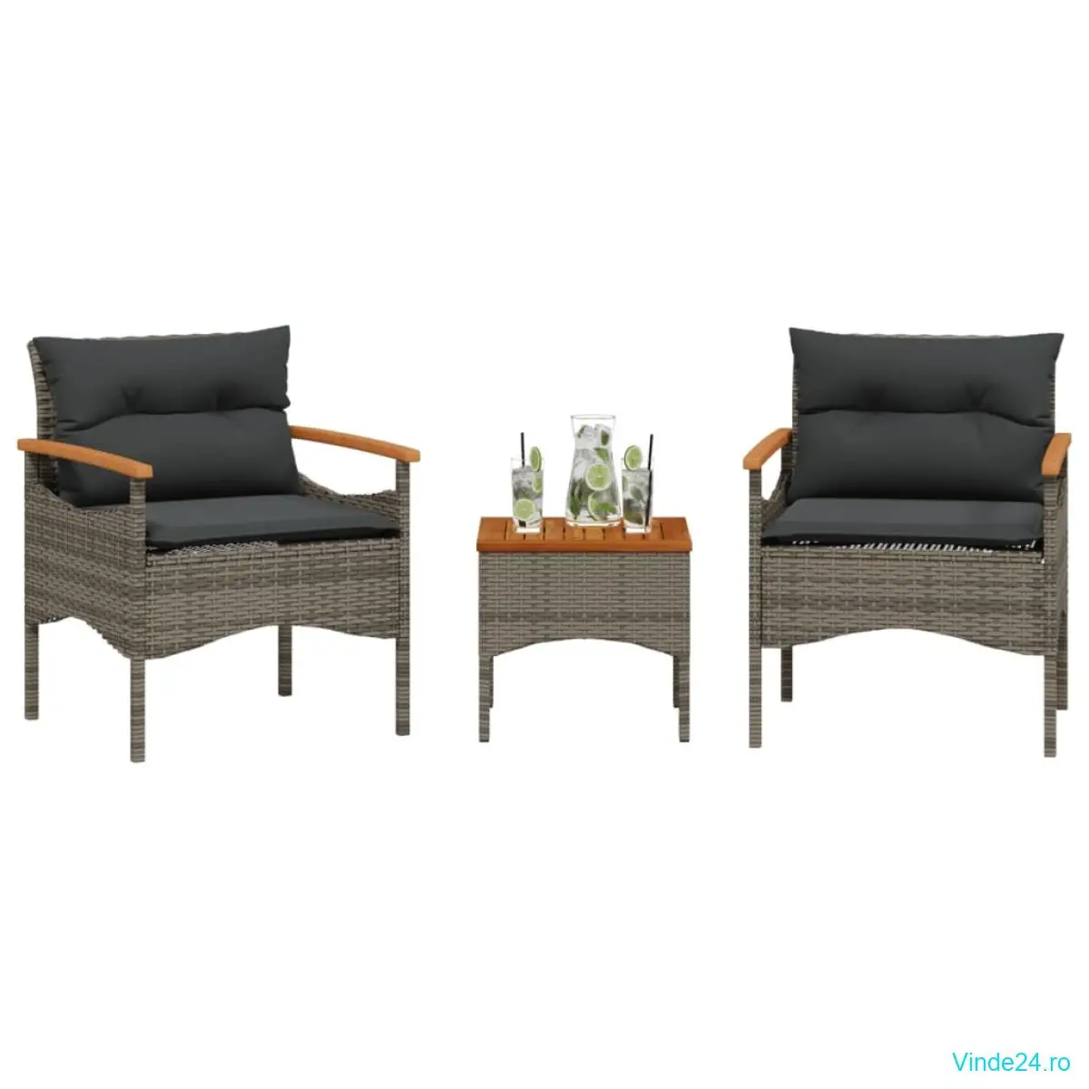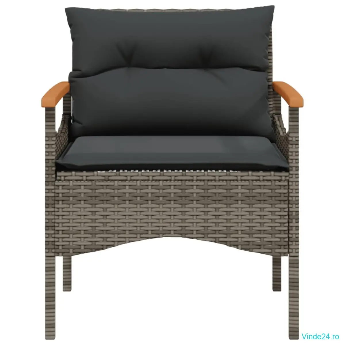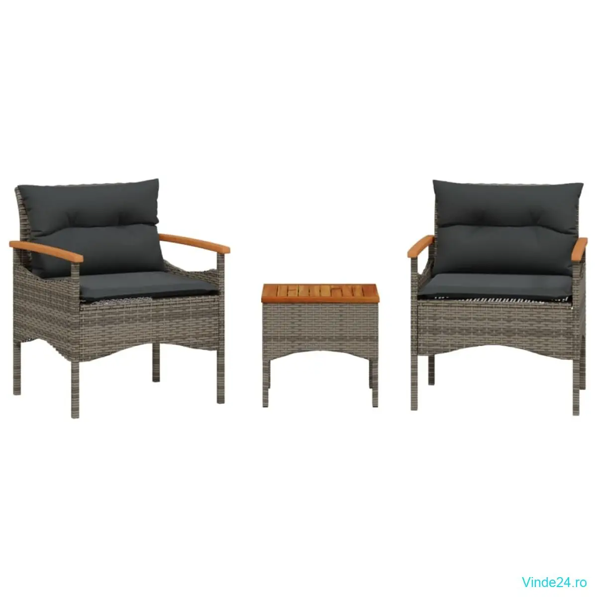 vidaXL Set canapea de grădină cu perne, 3 piese, gri, poliratan
