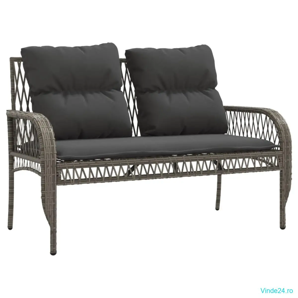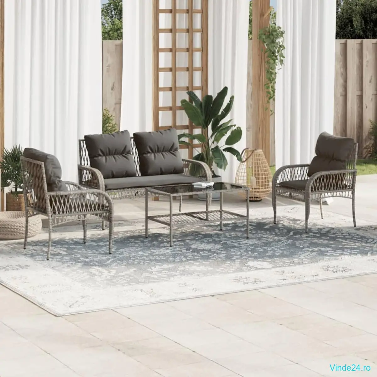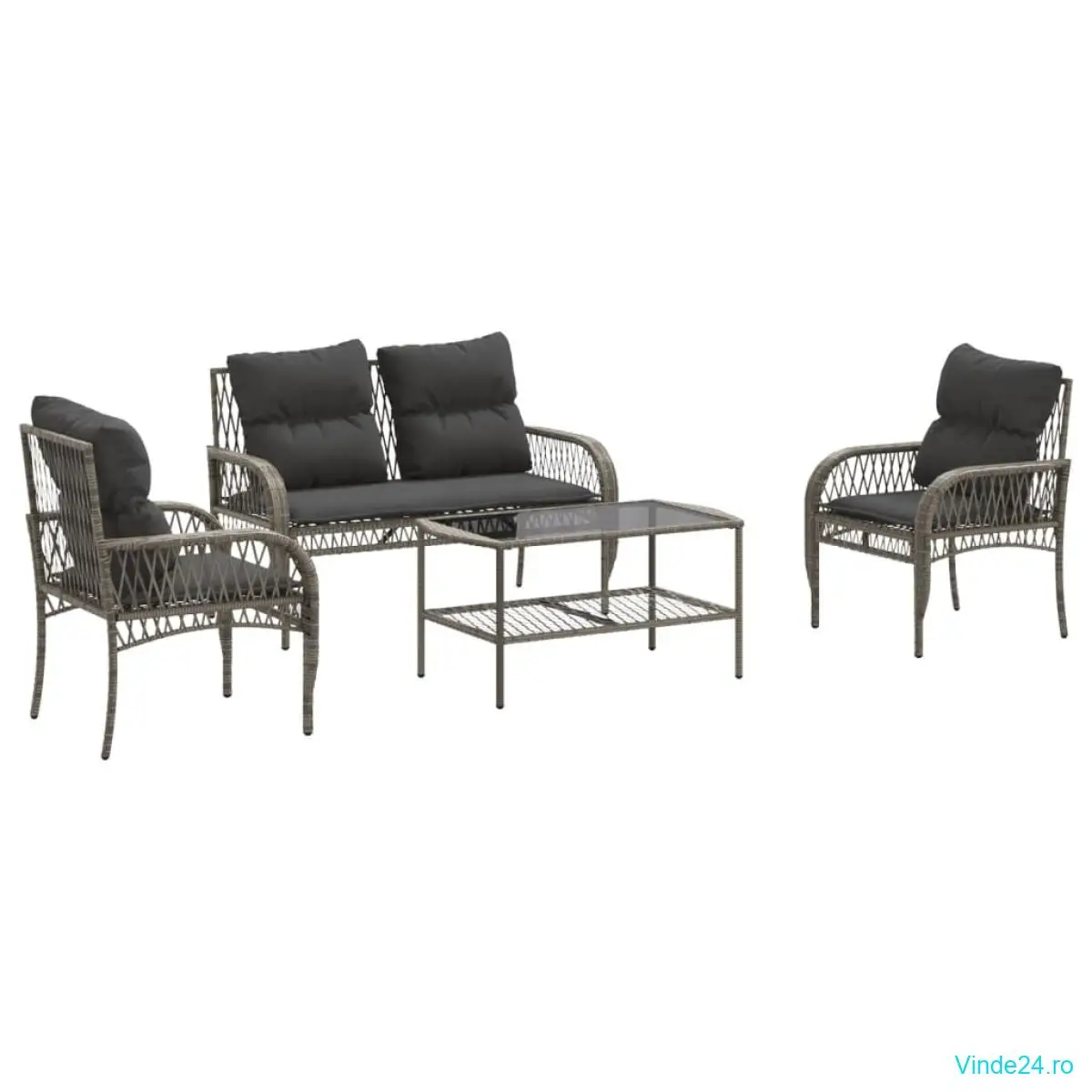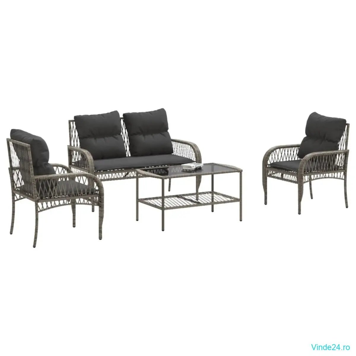 vidaXL Set canapea de grădină cu perne, 4 piese, gri, poliratan