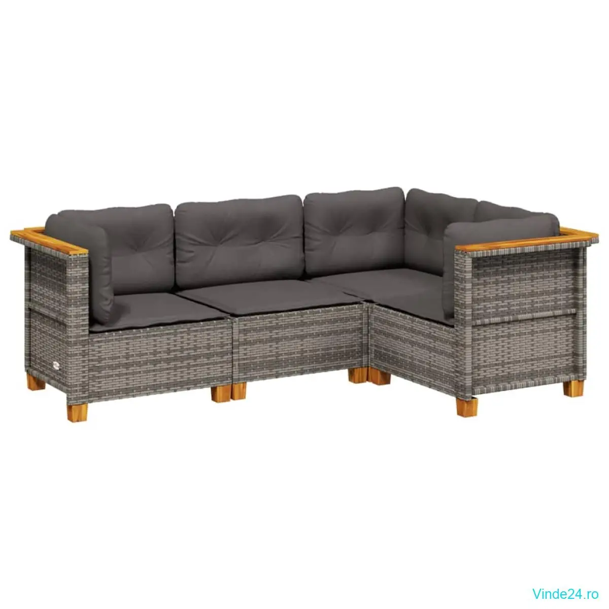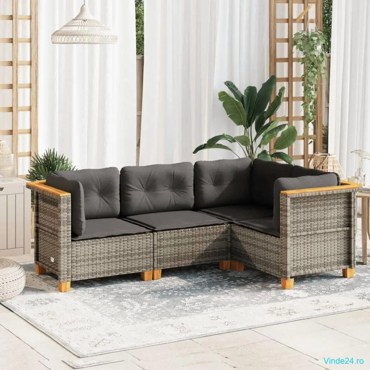 vidaXL Set canapea de grădină cu perne, 4 piese, gri, poliratan