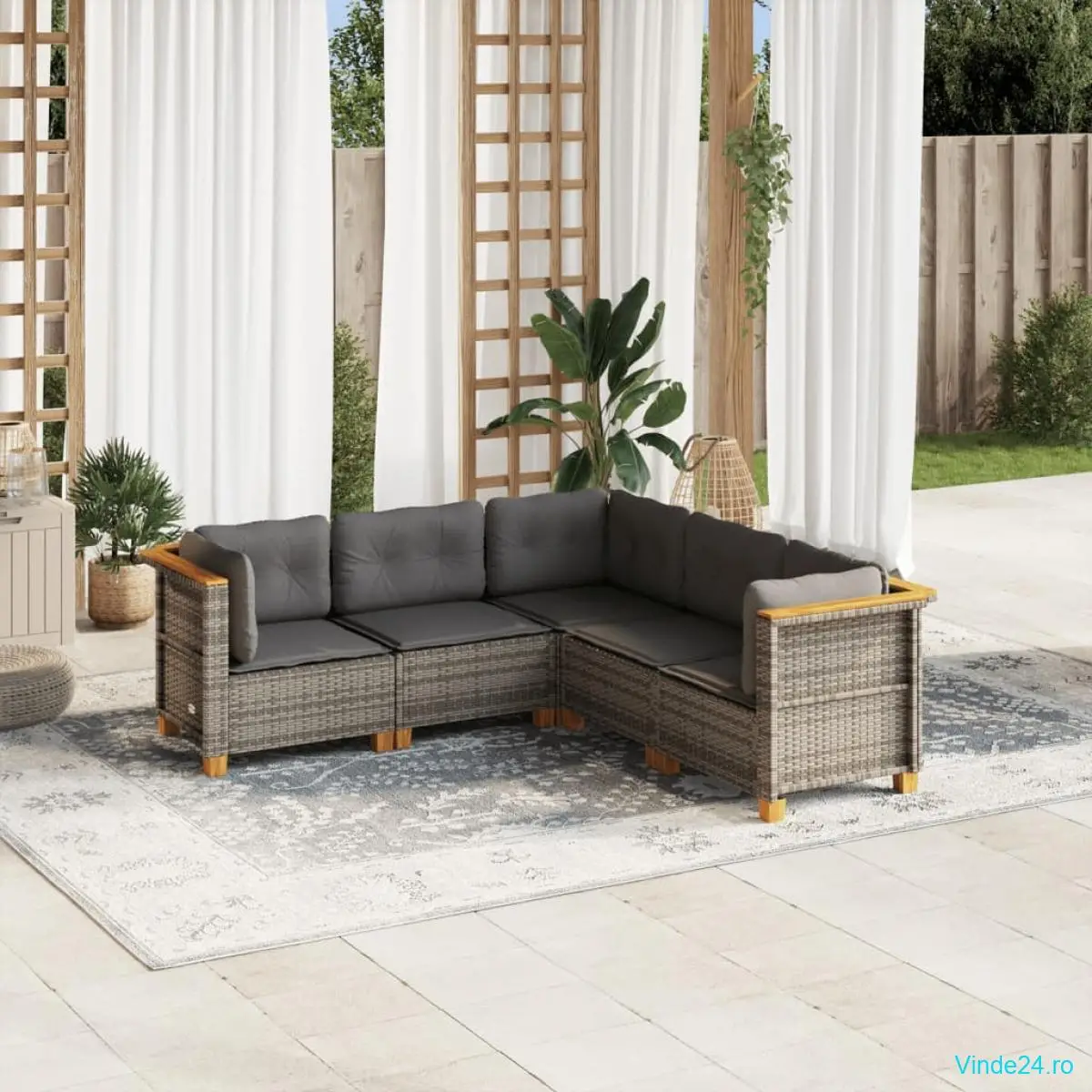 - Material: Ratan PE, oțel vopsit electrostatic, lemn masiv de acacia cu finisaj natural de ulei