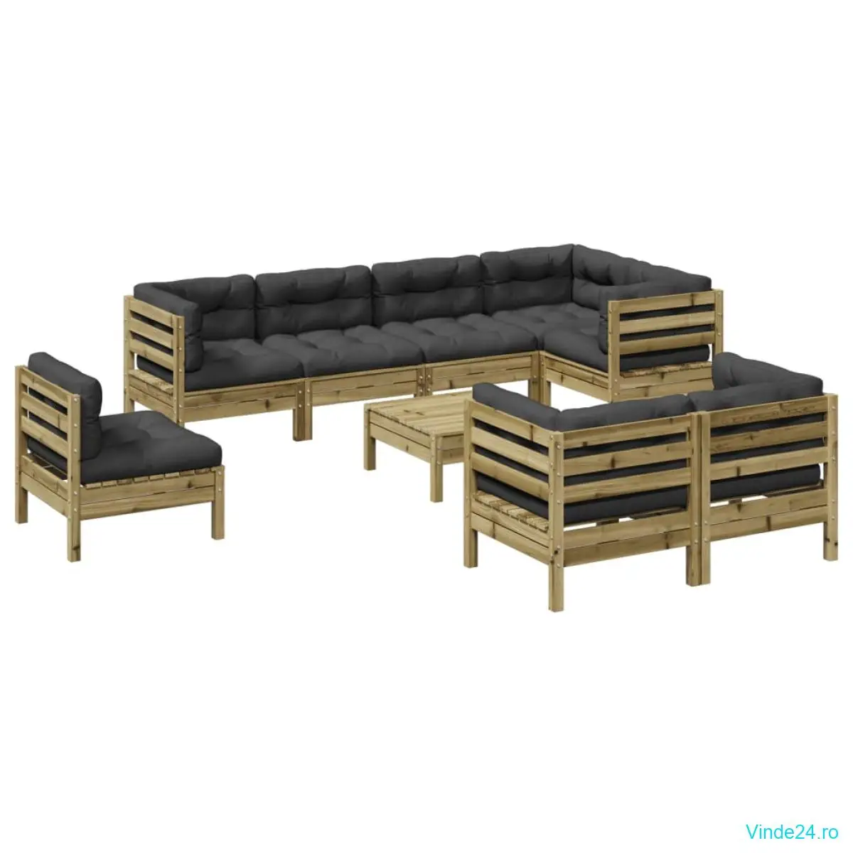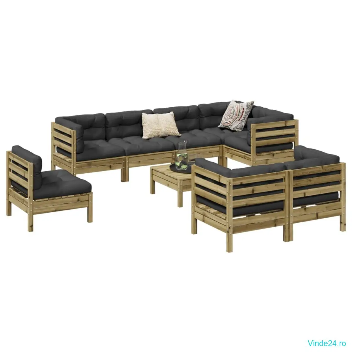 vidaXL Set canapea de grădină cu perne, 9 piese, lemn de pin tratat