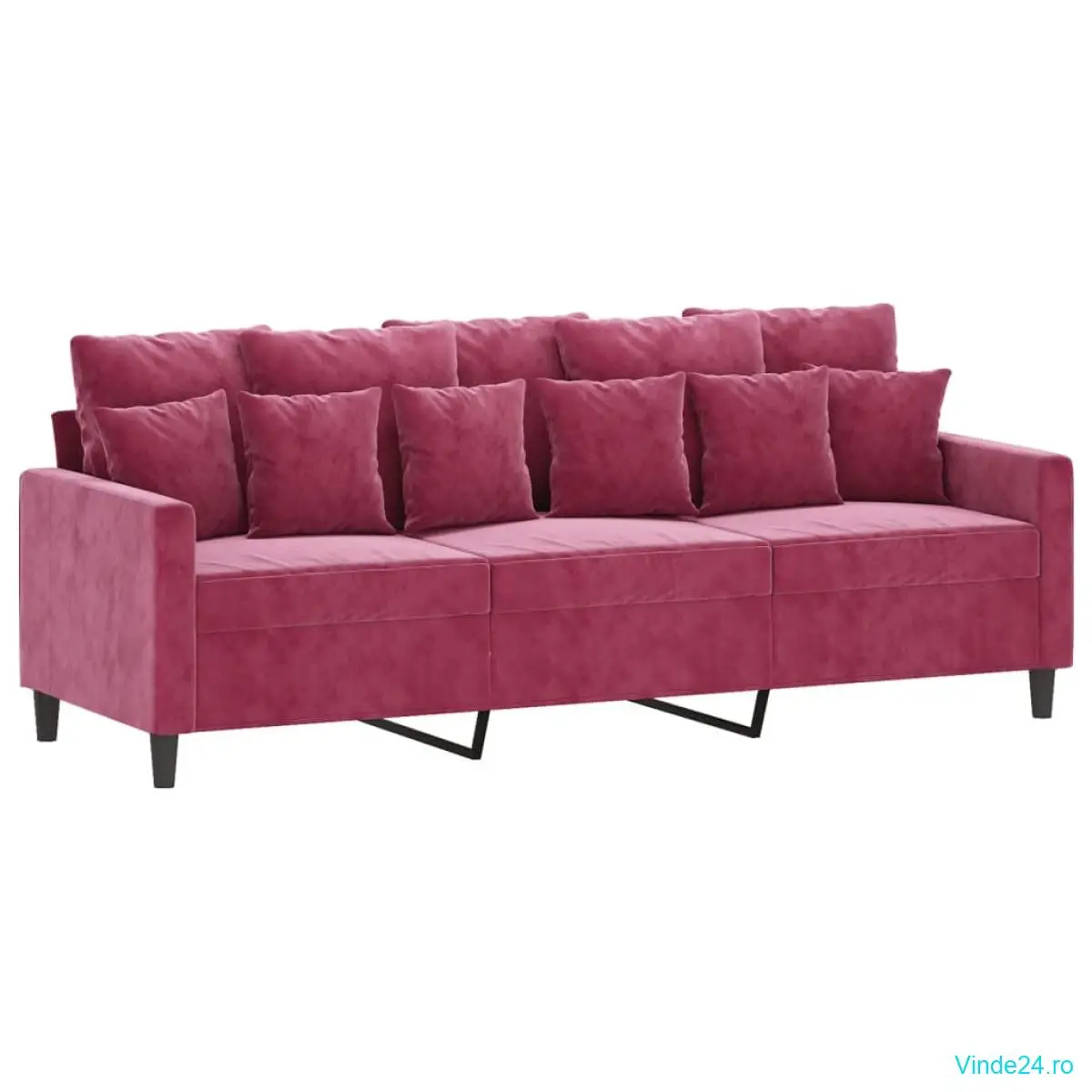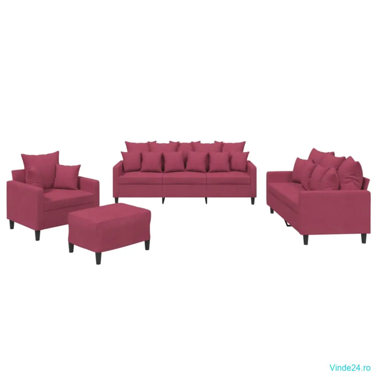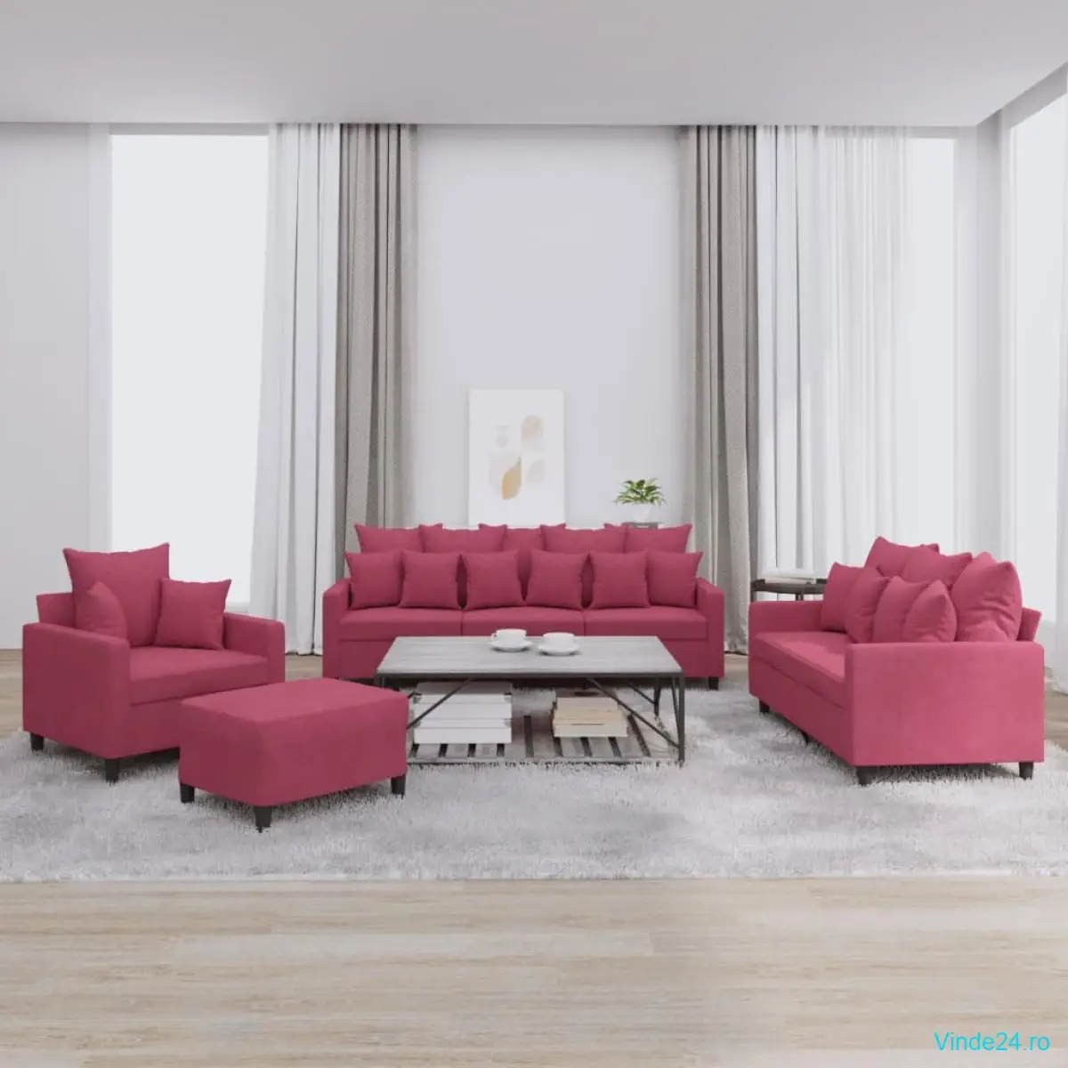 vidaXL Set canapele cu perne, 4 piese, roșu vin, catifea