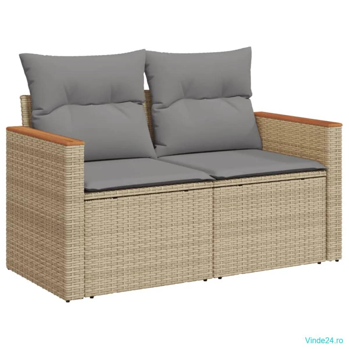 vidaXL Set canapele de grădină, 10 piese, cu perne, bej, poliratan