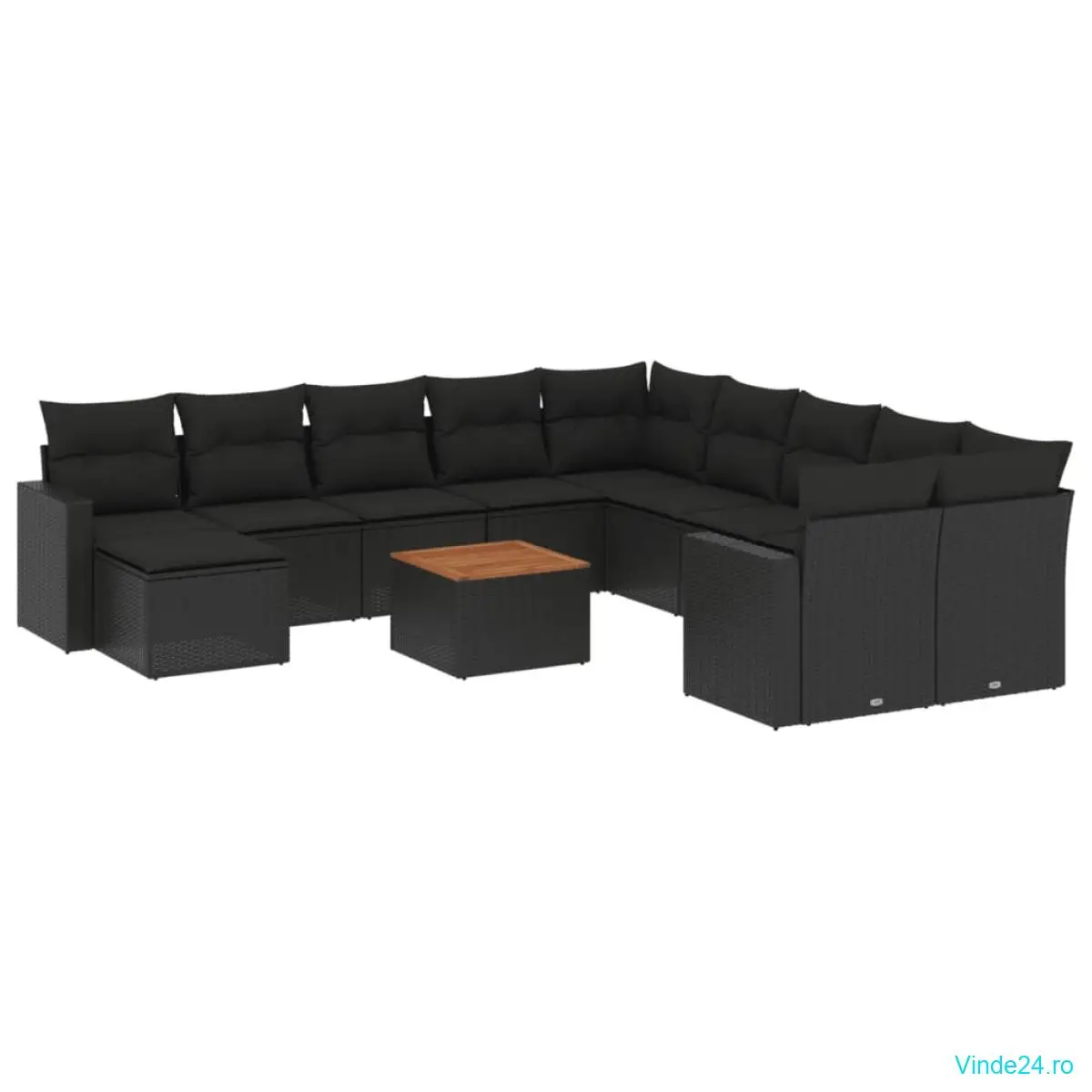 vidaXL Set canapele de grădină, 12 piese, cu perne, negru, poliratan